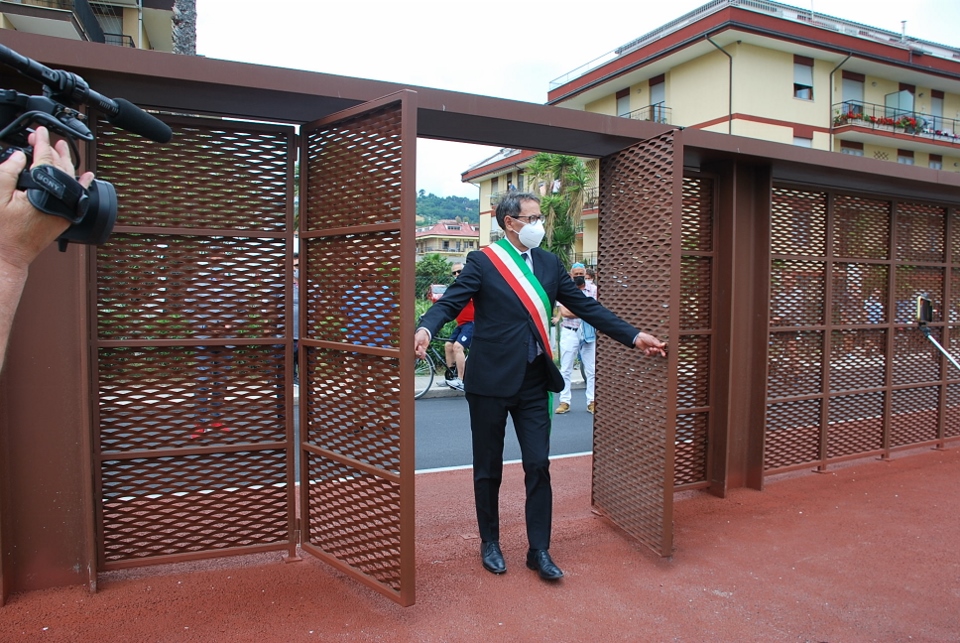 SAN BENEDETTO DEL TRONTO – Nel 40esimo anniversario dal tragico incendio che il 7 giugno 1981 devastò la curva sud dello stadio Ballarin provocando la morte di Carla Bisirri e Maria Teresa Napoleoni, il sindaco Pasqualino Piunti ha simbolicamente aperto i nuovi cancelli di accesso dell’area dell’ex stadio parzialmente riqualificata.