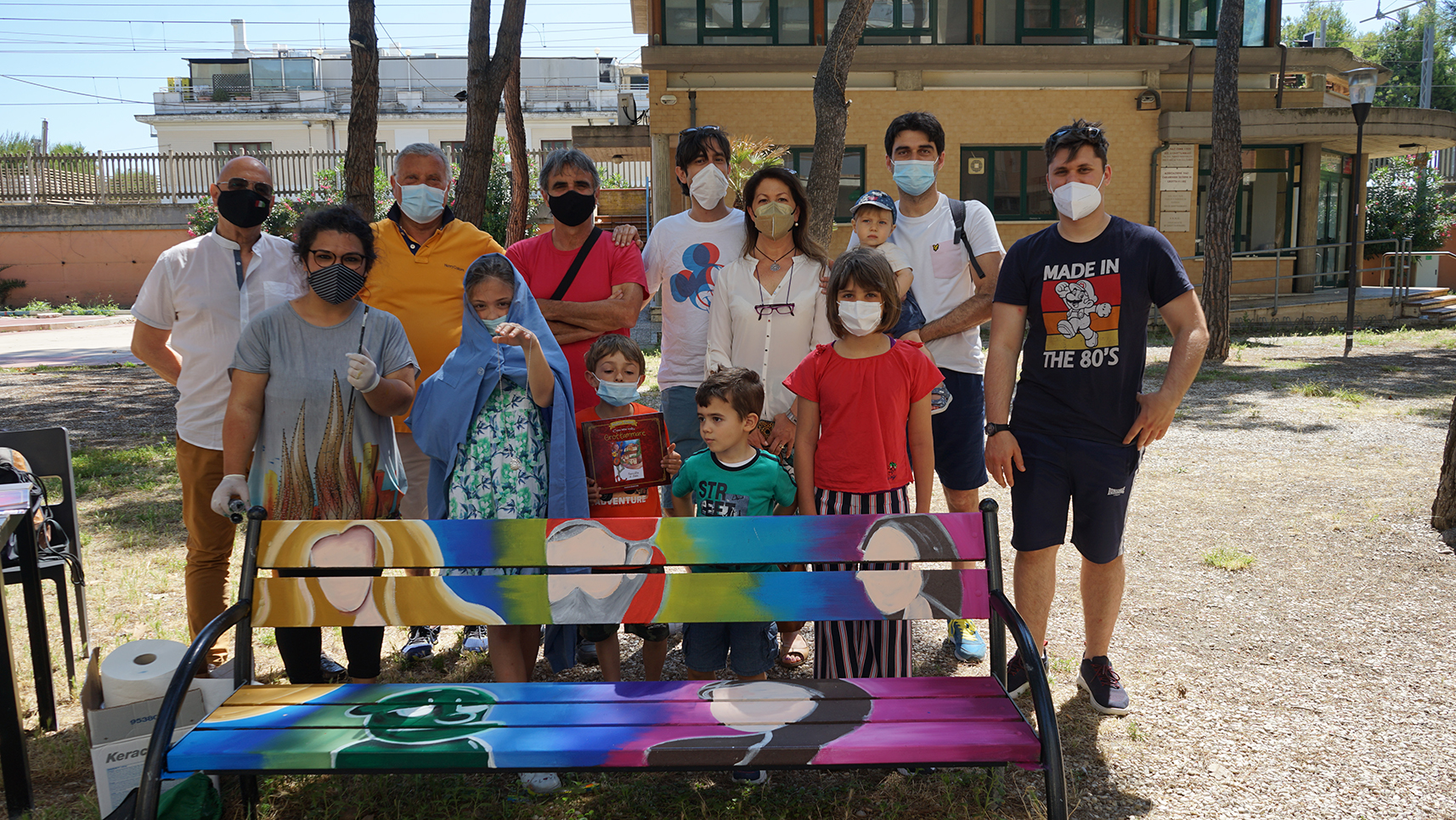 Ma mentre tutto questo accadeva, un’opera nasceva e prendeva forma: utilizzando una speciale tecnica mista per la decorazione pittorica, l’artista Maria Cristina Pompei, artista operante sul nostro territorio nel settore artistico a 360°, dal body painting al fabric painting, ha realizzato un’opera che resterà visibile agli occhi di cittadini e turisti, decorando una panchina sita proprio nella pineta, riprendendo il tema fiabesco del piccolo Felice, davanti agli occhi di tutti i bambini presenti, dei loro genitori e dei passanti incuriositi del gioioso trambusto.