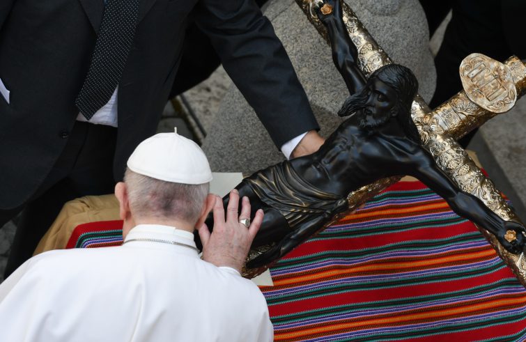 ha spiegato Francesco: “Nei giorni della sua ultima Pasqua, troviamo Gesù pienamente immerso nella preghiera. Prega in maniera drammatica nell’orto del Getsemani, assalito da un’angoscia mortale. Eppure Gesù, proprio in quel momento, si rivolge a Dio chiamandolo ‘Abbà’, Papà”. “Questa parola aramaica – la lingua di Gesù – esprime intimità e fiducia”, ha ricordato il Papa: “Proprio mentre sente le tenebre addensarsi intorno a Sé, Gesù le attraversa con quella piccola parola: Abbà! Papà. Gesù prega anche sulla croce, oscuramente avvolto dal silenzio di Dio. Eppure sulle sue labbra affiora ancora una volta la parola ‘Padre’”. “È la preghiera più ardita, perché sulla croce Gesù è l’intercessore assoluto”, il commento di Francesco: “prega per gli altri, prega per tutti, anche per coloro che lo condannano, senza che nessuno, tranne un povero malfattore, si schieri dalla sua parte. Tutti erano contro di lui o indifferenti, soltanto quel malfattore riconosce il potere”. “Padre, perdona loro perché non sanno quello che fanno”, la preghiera di Gesù, che “nel pieno del dramma, nel dolore atroce dell’anima e del corpo, prega con le parole dei salmi; con i poveri del mondo, specialmente con quelli dimenticati da tutti, pronuncia le parole tragiche del salmo 22: ‘Dio mio, Dio mio, perché mi hai abbandonato?.