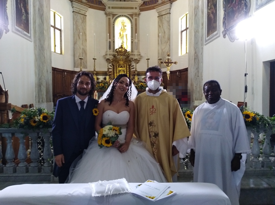ACQUAVIVA PICENA – Valeria Olivieri e Michele Chiappini si sono uniti nel sacro vincolo del matrimonio nella chiesa di san Lorenzo martire del convento degli Agostiniani Scalzi di Acquaviva Picena, domenica 27 giugno. Valeria, responsabile del gruppo del Rinnovamento nello Spirito Santo di Acquaviva Picena, e Michele molto legato al gruppo scout di San Benedetto del Tronto e confratello della Confraternita del Cristo Morto di Acquaviva Picena, hanno pronunciato il loro “sì” davanti a Dio perché hanno trovato nell’esempio di amore di Gesù Cristo una guida da seguire nella loro nuova vita insieme. Hanno scoperto nell’ “amico paraclito”, lo Spirito Santo, la forza per affrontare le difficoltà e per perdonare. Valeria e Michele hanno intrapreso una vita a due con entusiasmo e fede, con affetto e speranza; decisi a coltivare i frutti della gioia e della condivisione, consapevoli che il matrimonio aiuta entrambi gli sposi nella crescita spirituale e intellettuale. Buon viaggio, sostenuti dalla forza del Signore, in questa loro vita insieme a Valeria e Michele, perché il matrimonio non è un arrivo, ma un nuovo inizio.