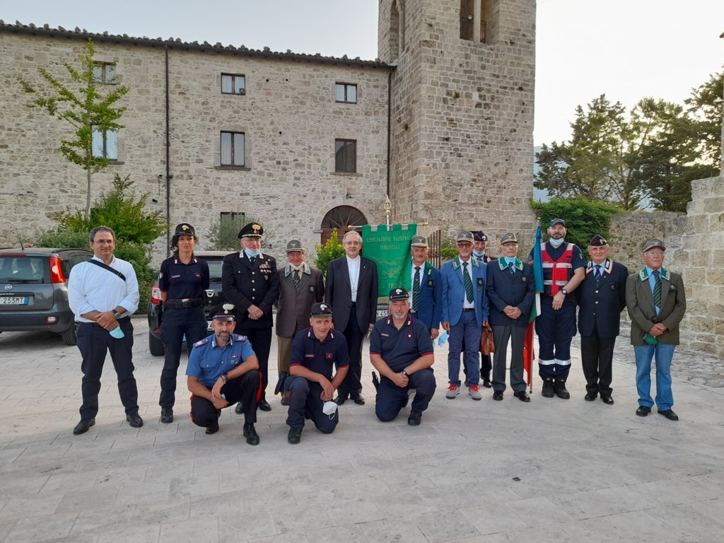 CIVITELLA DEL TRONTO – Si è svolta lunedì 12 Luglio, alle ore 18:30, presso l’Abbazia di Santa Maria in Monte Santo di Civitella del Tronto, la Celebrazione Eucaristica in onore di San Giovanni Gualberto, patrono dei forestali. La Messa è stata presieduta dal vescovo Carlo Bresciani e concelebrata da don Marco Di Giosia e don Pietro Paolo Di Domenico. La cerimonia, avvenuta nel rispetto del distanziamento e con i dispositivi di protezione previsti per l’occasione, si è svolta alla presenza del Colonnello Gualberto Mancini, Comandante del Gruppo Carabinieri Forestale di Teramo e del delegato Inter-Regionale dell’Associazione Nazionale Forestali in Congedo Antonio Paesani che è stato a lungo Comandante Provinciale di Teramo.