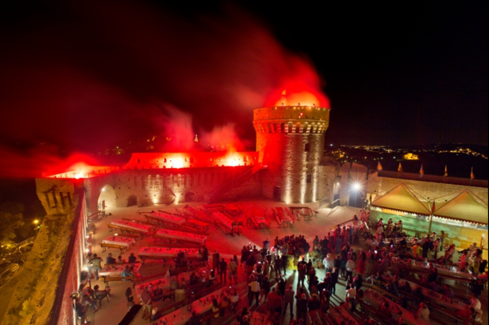 ACQUAVIVA PICENA – Acquaviva Picena si prepara a vivere la XXXIV edizione di Sponsalia, la Rievocazione Storica del matrimonio celebrato ad Acquaviva nel 1234 tra Forasteria Degli Acquaviva e Rinaldo Dei Brunforte. Sponsalia 2021 si svolgerà nel pieno rispetto delle norme anti Covid. Lo scorso anno Sponsalia ha subito una modifica rispetto al programma tradizionale composto da tre serate, solo il Banchetto Medievale in Fortezza non era stato cancellato; quest’anno, causa la pandemia ancora in corso, l’Associazione Palio del Duca di Acquaviva Picena, presidente cav. Nello Gaetani, ha ripristinato le tre serate apportando alcune modifiche. La Rievocazione per giovedì 5 agosto prevede l’ingresso gratuito, ma previa prenotazione. Durante la serata si potrà assistere alla rappresentazione in costumi medievali del fidanzamento e del matrimonio tra Forasteria e Rinaldo, non mancheranno gli spettacoli medievali e banco di ristoro gastronomico medievale. L’ingresso sarà aperto dalle 19:00, mentre l’inizio degli spettacoli è previsto per le ore 21:00. Venerdì 6 agosto l’ingresso è libero. Dalle ore 19:00 alle ore 24:00 in piazza del Forte ci sarà la presenza del mercato medievale didattico: fabbricazione della carta, calligrafo, pittura, barbitonsore, fabbro, tessitura, lavorazione della pelle, lettura delle Sibille, gioielliere, lavorazione della pergamena, maschere, banco di ristoro gastronomico medievale. Nella stessa serata, venerdì 6 agosto, in piazza san Niccolò dalle ore 19:00 alle ore 24:00 ci sarà la giostra medievale e spettacoli per bambini, sempre ad ingresso libero. Domenica 8 agosto dalle ore 20:00 all’interno della Fortezza Medievale si potrà partecipare al Banchetto Medievale, previa prenotazione perché i posti sono limitati. Il menù rigorosamente medievale verrà servito in costume d’epoca, durante il banchetto si potranno assistere agli spettacoli di musici, giullari, fachiri e danzatrici. Al termine ci sarà la simulazione dell’incendio della Fortezza.