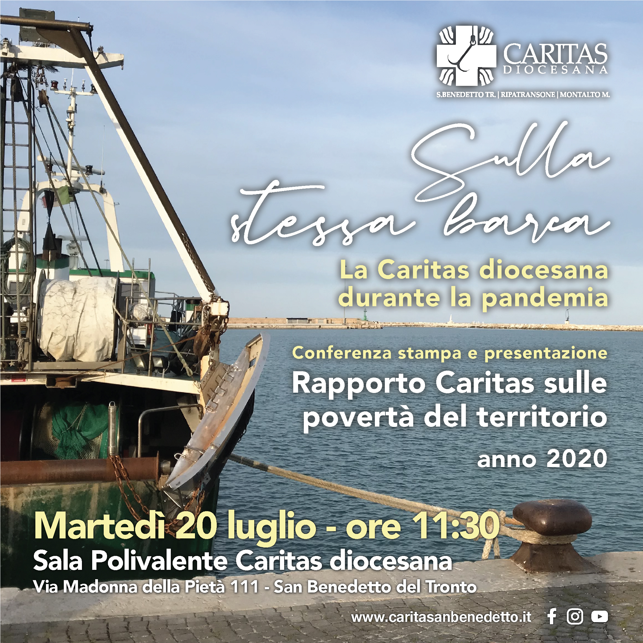 DIOCESI – Oggi, martedì 20 luglio, alle ore 11:30 presso la Sala Polivalente della Caritas diocesana in Via Madonna della Pietà 111 a San Benedetto del Tronto, verrà presentato il rapporto sulle povertà del territorio per l’anno 2020 dal titolo “Sulla stessa barca. La Caritas diocesana durante la pandemia” .