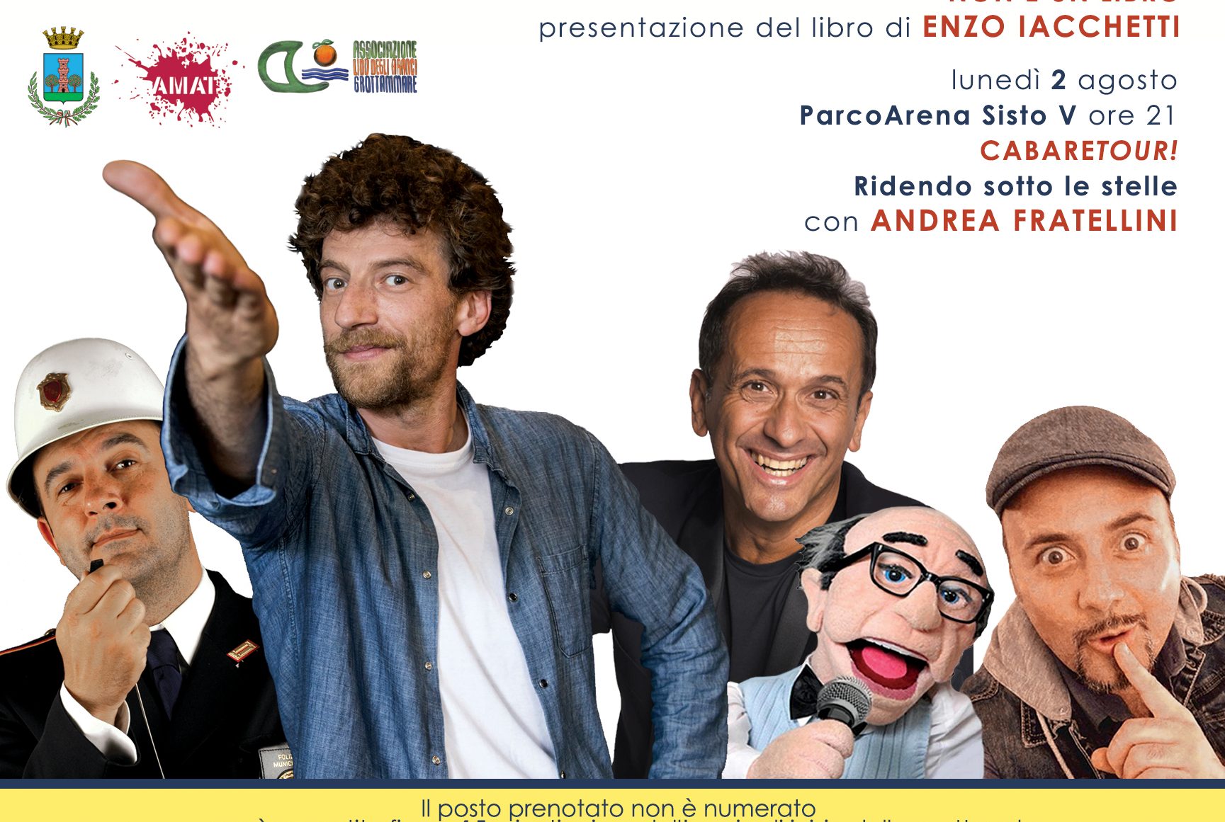 La produzione, che riunisce Comune e Amat dopo un anno di stop, riprende dal numero 36 con una nuova sede, un programma variegato animato da volti amati del mondo dello spettacolo umoristico: si parte con le due serate di spettacolo e concorso per nuovi comici venerdì 30 e sabato 31 luglio, condotte dal cabarettista romano Stefano Vigilante e con la partecipazione di Uccio De Santis e Maurizio Lastrico, a cui va il premio alla carriera Arancia d’oro nell’anno dell’anniversario dantesco (ParcoArena Sisto V, ore 21); domenica 1 agosto, nel giardino comunale, il Festival sposa il progetto di solidarietà di Enzo Iacchetti, che presenta anche a Grottammare il suo “Non è un libro” dedicato alla raccolta di fondi per l’acquisto di ambulanze per la Croce Rossa (Giardino comunale, ore 18.30); sotto le stelle la serata conclusiva con Andrea Fratellini, l’esilarante ventriloquo vincitore del concorso per nuovi comici Cabaret, amoremio! 2019, che torna a Grottammare con la palma di Italia’s got Talent 2020 e l’immancabile zio Tore (ParcoArena Sisto V, ore 21).