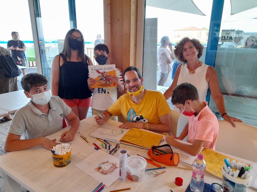 L’incontro è stato arricchito dalla realizzazione, a sorpresa, di un laboratorio creativo – artistico su Milla, rivolto a tutti i bambini presenti e guidato dall’artista Baldoni, autore delle illustrazioni del libro. Disegnatore e colorista, diplomato all’Accademia Disney, Baldoni ha lavorato per “Topolino”, “Minnie & Company”, “Paperino” e “Disney Channel”. “Il suo contributo a “Il Segreto di Milla” – ha dichiarato l’autrice Mazza – è stato determinante per il nostro libro e lo ha impreziosito moltissimo.”