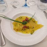 “Per questa serata speciale abbiamo pensato ad un menu speciale – ha dichiarato lo Chef Sergio Romani – Ho proposto un antipasto di salumi e formaggi Marchigiani assortiti, accompagnati da crostini al tartufo e alle olive, con le immancabili olive all’Ascolana. Due sono stati i primi piatti che ho fatto assaggiare: maltagliati con zucchine, pancetta e zafferano e maccheroncini di Campofilone con ragù del tipico del medesimo posto. Per secondo ho pensato ad un classico della nostra zona: arrosto di vitello con patate al forno. Le scelte culinarie sono state effettuate con l’intento di esaltare i prodotti del Piceno, che provengono tutti da aziende locali, ed i vini che li hanno accompagnati, che sono un’eccellenza del nostro territorio.”