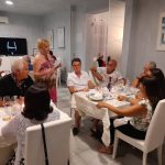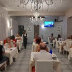 La cena è stata impreziosita dalla grande professionalità e sapienza della guida turistica Sara Giorgi, la quale, attraverso le sue parole ed alcuni video, ha condotto i presenti in un viaggio virtuale e sensoriale alla scoperta dei tesori del Piceno. “Il nostro è un territorio che ha una storia molto antica – ha dichiarato – e gli abitanti di questi luoghi hanno dimostrato, negli anni, di fare e saper fare cose meravigliose: non solo sono riusciti a creare delle eccellenze, ma anche a preservarle e tramandarle nei secoli attraverso tradizioni sono oggi un grande risorsa per il nostro territorio e per il nostro turismo. Ieri sera abbiamo accennato tanti temi – ha proseguito Giorgi – ma in particolare, approfittando del fatto che durante la cena sono state fatte assaggiare, ho colto l’occasione per spiegare le origini delle olive ascolane ed alcune curiosità ad esse legate. Ad esempio, ho raccontato di come Cleopatra ebbe modo di conoscere le nostre olive nel mercato a Roma, ho elencato le loro grandi proprietà benefiche ed ho spiegato come è nata l’oliva ripiena. Un altro approfondimento è stato fatto sulla città di Montalto e sui musei sistini, visto che quest’anno ricorre il Cinquecentenario della morte di Papa Sisto V, nostro conterraneo. Dalla sua figura e da quella di altri personaggi è ben emerso il carattere forte dei Marchigiani, una loro certa laboriosità che, in fondo, è stata il filo conduttore dell’evento: il nostro è un territorio di grande storia e grande prestigio e i suoi abitanti sono stati in grado di tramandare nei secoli i loro saperi e le loro capacità di fare. È proprio la continuità , nel tempo, di queste traduzioni, il dato più significativo che abbiamo voluto sottolineare.”