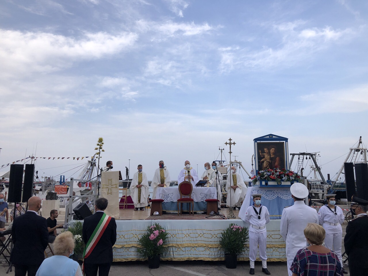 Nella sua omelia il Vescovo Carlo ha fatto riferimento a Maria come a un porto sicuro al quale ogni fedele può approdare per trovare conforto e consolazione e ha invitato a vigilare non solo contro le onde del mare, ma anche contro i marosi spirituali che rischiano di far regredire la nostra società. La celebrazione si è conclusa con il Canto Tradizionale alla Madonna della Marina. Appuntamento a oggi pomeriggio, quando alle ore 19.00 la Festa della Marina si concluderà con la celebrazione della Santa Messa presso il sagrato della Basilica Cattedrale.