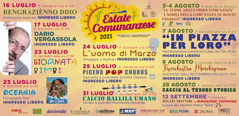Certamente. Abbiamo stilano un cartellone di appuntamenti, “Estate comunanzese 2021”, alcuni si sono già tenuti altri si terranno nelle prossime settimane e fino al 12 settembre. Si tratta di una serie di eventi organizzati tenendo conto del protocollo anti Covid-19.