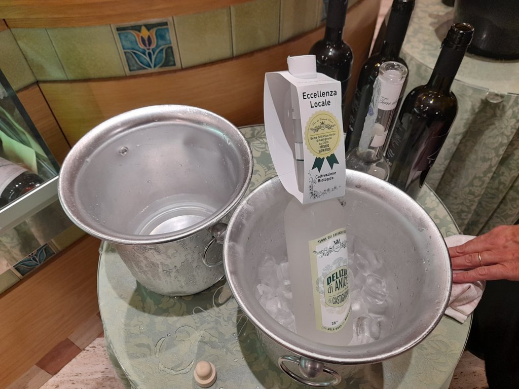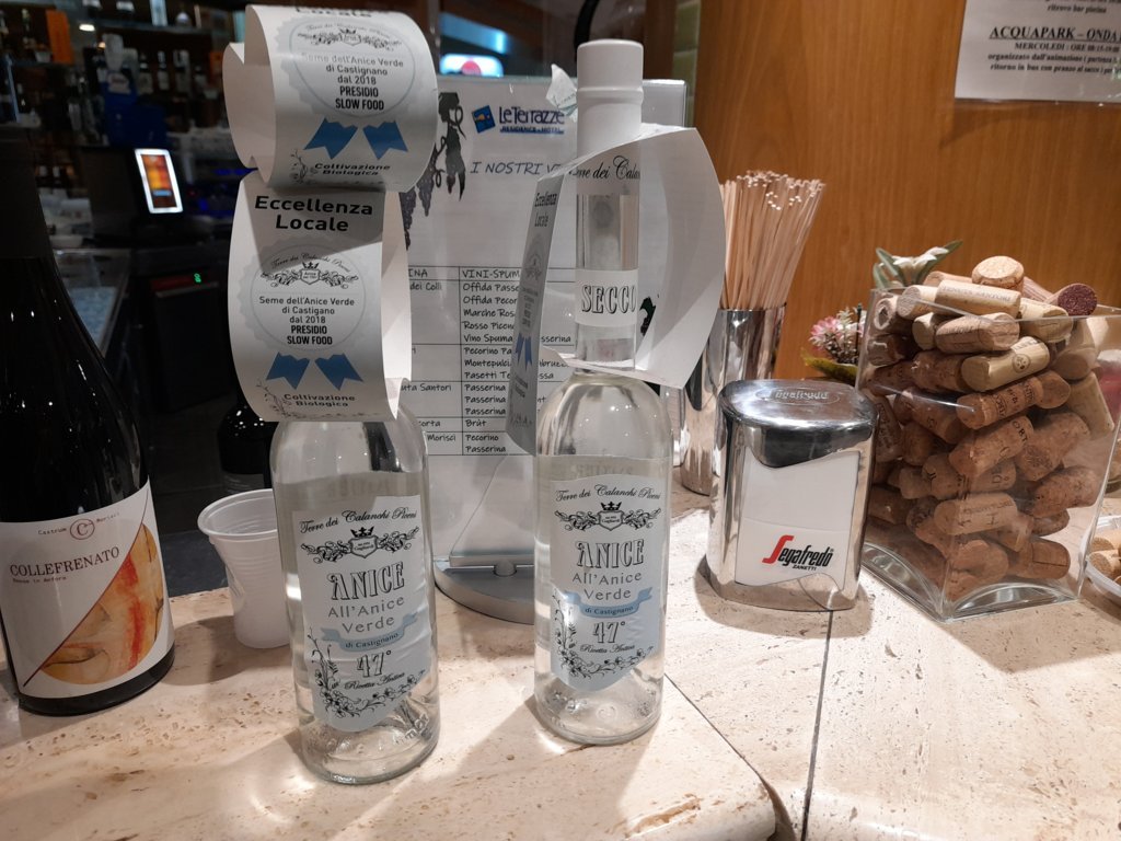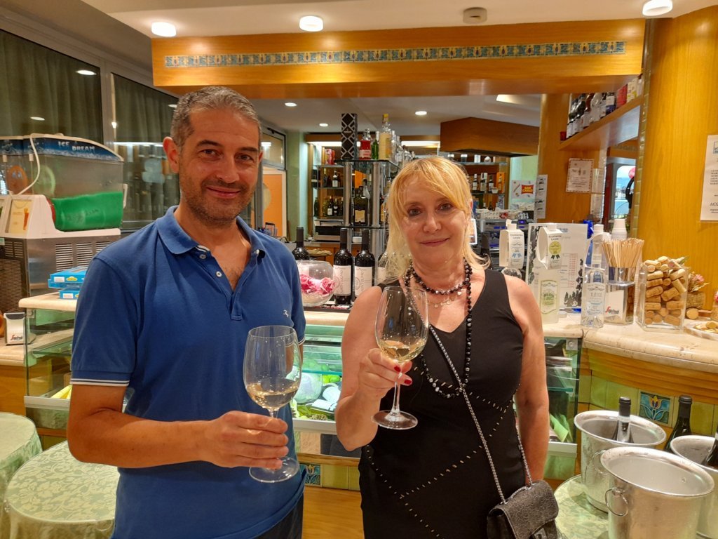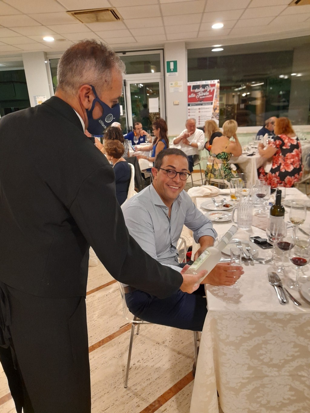 Quattro, invece, sono state le cantine promosse durante la cena dal Sommelier Ivan Millanaccio, appartenente all’AIS Marche (Associazione Italiana Sommelier della nostra regione) – delegazione di Ascoli Piceno. “Ad ogni piatto abbiamo abbinato un vino del nostro territorio. Per l’antipasto ho scelto una Passerina Marche IGT dell’Azienda Castrum Morisci di Moresco. Con il risotto ho proposto il Gheorgòs, un Offida Pecorino DOCG della Tenuta La Riserva di Castel di Lama ed Offida. Con la tagliata ho abbinato due vini: prima un Corbù Clara Marcelli 2017, un Marche Rosso IGT dell’Azienda Agricola Biologica Clara Marcelli di Castorano e un Montolmo 2015, un IGT Marche Rosso della Cantina Sant’Isidoro di Corridonia. Ho scelto due rossi da vitigni diversi ed annate diverse per stimolare l’attenzione e l’interesse dei commensali, i quali hanno gradito molto e si sono confrontati tra loro. Oltre ai vini delle cantine che abbiamo ospitato stasera, ho utilizzato anche un’altra bevanda locale: infatti, al dolce ho abbinato un liquore dal gusto deciso all’Anice Verde di Castignano dell’Azienda Terre dei Calanchi. È stata una bellissima esperienza, perché i clienti si sono mostrati molto interessati, chiedendo anche maggiori dettagli sulle aziende e sulle possibilità di acquisto dei vini.”