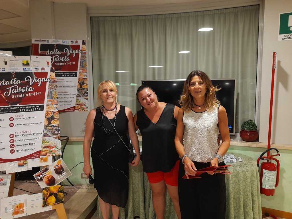 Al termine della cena i commensali sono stati sorpresi con un pizzico di effetto wow, fortemente voluto dalla Prof.ssa Maria Pia Spurio: tra gli ospiti presenti, infatti, sono stati sorteggiati quattro commensali che hanno ricevuto in omaggio alcuni prodotti tipici del Piceno ed infine è stato sorteggiato un fortunato che ha vinto un soggiorno con pernottamento per due persone, da fare in primavera, presso l’Hotel “Villa Serra” di Montefortino, comprensivo di una cena per due persone presso il ristorante “Il Tiglio” di Montemonaco. Felicissima, la signora che si è aggiudicata il premio, ha dichiarato: “Grottammare mi porta sempre fortuna: tra pochi minuti sarà il mio compleanno, quindi considero questo soggiorno un regalo inaspettato, ma meraviglioso!”