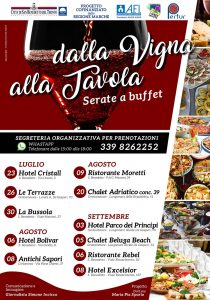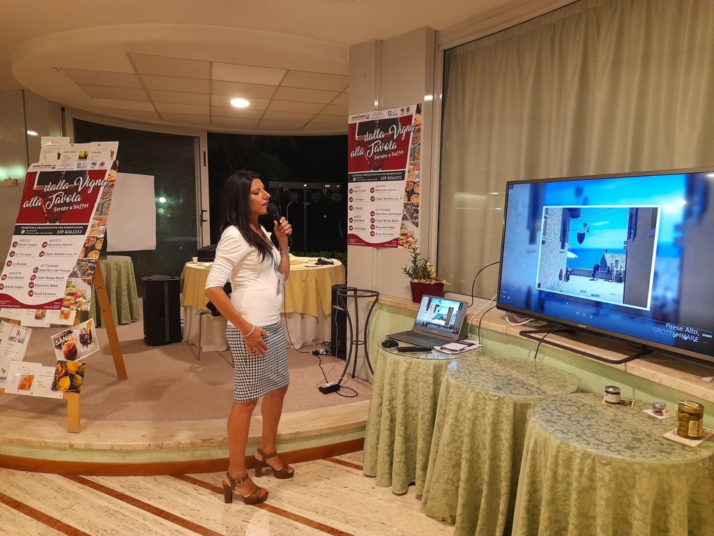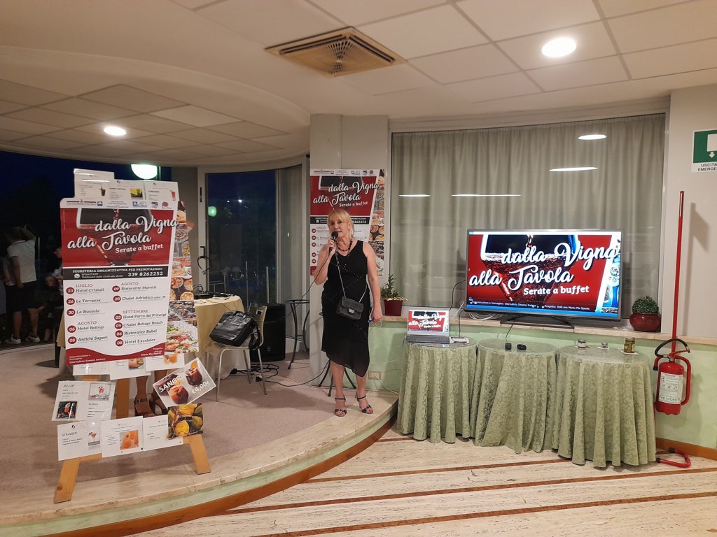 Il progetto, chiamato “Dalla Vigna alla Tavola”, è promosso dall’AFI e cofinanziato dalla Regione Marche e dal Comune di San Benedetto del Tronto. Dopo l’Hotel “Cristall” di San Benedetto del Tronto, ieri sera è stata la volta dell'”Hotel Residence Le Terrazze” di Grottammare, dove alle 20:30 si sono radunati molti turisti per una cena alla scoperta delle eccellenze culinarie ed enologiche del territorio Piceno. Presenti, oltre al presidente Anna Amici, organizzatrice e co-finanziatrice dell’evento, anche la Prof.ssa Maria Pia Spurio, fautrice dell’idea progettuale, e la guida turistica Sara Giorgi, che ha impreziosito la serata con il racconto sapiente e coinvolgente sui tesori del Piceno. Ospite a sorpresa Alessandro Rocchi, Vice-Sindaco di Grottammare.