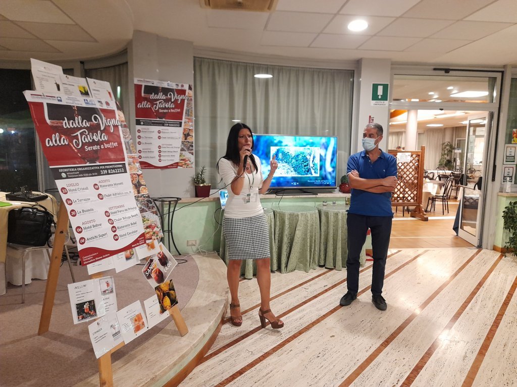 Il progetto, chiamato “Dalla Vigna alla Tavola”, è promosso dall’AFI e cofinanziato dalla Regione Marche e dal Comune di San Benedetto del Tronto. Dopo l’Hotel “Cristall” di San Benedetto del Tronto, ieri sera è stata la volta dell'”Hotel Residence Le Terrazze” di Grottammare, dove alle 20:30 si sono radunati molti turisti per una cena alla scoperta delle eccellenze culinarie ed enologiche del territorio Piceno. Presenti, oltre al presidente Anna Amici, organizzatrice e co-finanziatrice dell’evento, anche la Prof.ssa Maria Pia Spurio, fautrice dell’idea progettuale, e la guida turistica Sara Giorgi, che ha impreziosito la serata con il racconto sapiente e coinvolgente sui tesori del Piceno. Ospite a sorpresa Alessandro Rocchi, Vice-Sindaco di Grottammare.