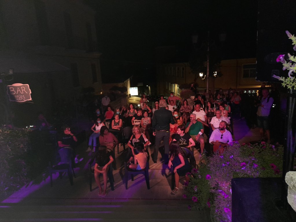 Anche l’attore Corrado Tedeschi, livornese di nascita ma genovese di adozione, diplomato presso l’Accademia del Teatro Stabile di Genova, intervistato a caldo subito dopo lo spettacolo, ha speso ai nostri microfoni parole di apprezzamento per Colonnella e per la serata vissuta: “È la prima volta che vengo nel vostro paese che è bellissimo e sorprendente, un po’ come tutta la zona in cui è ubicato. Per quanto concerne lo spettacolo, voglio dire che ho accettato subito la proposta che mi è stata fatta dal maestro Beretta. Credo, infatti, che questo mestiere, senza curiosità, non esista. A me piace sperimentare e la curiosità è la molla che mi spinge a fare le cose, non solo nel mio lavoro, ma in generale nella vita. Inizialmente l’ho preso come uno strumento di riscatto nei confronti della scuola: da bambino, infatti, non ero molto bravo e non conoscevo Dante, che, invece, ho scoperto dopo, e che ho trovato meraviglioso. Ora, per vendicarmi, durante lo spettacolo interrogo il pubblico, ma soprattutto ci gioco, perché credo che certi temi vadano proposti con la giusta leggerezza. Infine voglio aggiungere che è stato davvero bello ritrovare il pubblico dopo un anno di chiusure e restrizioni. Stasera ho visto persone coinvolte, felici di essere uscite di casa, con la voglia di non stare più davanti alla tv, bensì con il desiderio di tornare in teatro e sentire altre cose. Il nostro lavoro, senza il pubblico, non esisterebbe. Stasera è stato magnifico riabbracciare il nostro pubblico in questa scalinata che è davvero un luogo magico.”