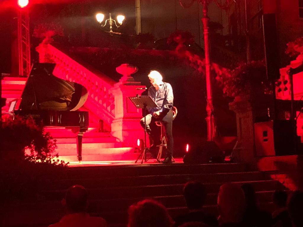 Il maestro Marco Beretta ha dichiarato: “Colonnella è un luogo splendido e la vostra magnifica scalinata mi ha ispirato. Da molti anni vengo in villeggiatura ad Alba Adriatica, quindi conosco benissimo la zona e suonare qui ha un fascino grandissimo. La serata è stata fantastica: il pubblico è stato attento e caldo e, nonostante lo spettacolo sia impegnativo per il tema trattato, lo ha comunque seguito con partecipazione attiva per tutta la durata. Questo melologo è stato concepito prima musicalmente, nel 2020: ho composto la musica, cogliendo i versi che – a mio avviso – sono i più significativi delle tre Cantiche de “La Divina Commedia”, non in ordine consequenziale, ma sparso. Le note evocano, sottolineano e fanno riflettere sul contenuto di questi versi. Poi successivamente ho coinvolto Corrado che, con la sua consumata esperienza, ha scritto l’introduzione e quest’anno finalmente abbiamo iniziato a presentarlo al pubblico. Questa di Colonnella è stata l’ultima tappa del tour estivo, riprenderemo poi in autunno a Milano.”