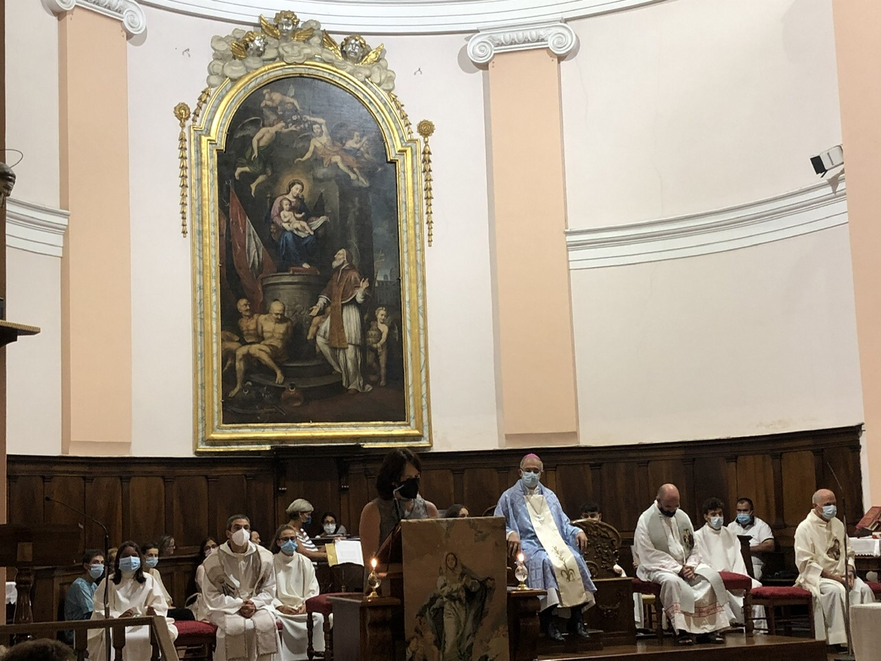 Mons. Bresciani ha poi parlato della maternità biologica e di quella spirituale di Maria: «Nel Vangelo abbiamo ascoltato l’esclamazione da parte della folla: “Beato il grembo che ti ha portato e il seno che ti ha allattato!” ovvero “Beata quella donna che ti ha messo al mondo e che ti ha fatto crescere”. È questo uno dei punti della grandezza di Maria: lei è la madre del Figlio di Dio. Ma Gesù risponde: “Beati piuttosto coloro che ascoltano la parola di Dio e la osservano!”. In questo modo Gesù ci mostra che non abbiamo capito fino in fondo la grandezza di Maria perché certamente Maria ha messo al mondo Gesù, lo ha fatto crescere e lo ha educato, ma Maria ha fatto tutto questo perché ha accolto la Parola di Dio. Se non possiamo imitare Maria nella generazione biologica di Gesù, possiamo imitare il suo atteggiamento di ascolto per giungere come lei in cielo»