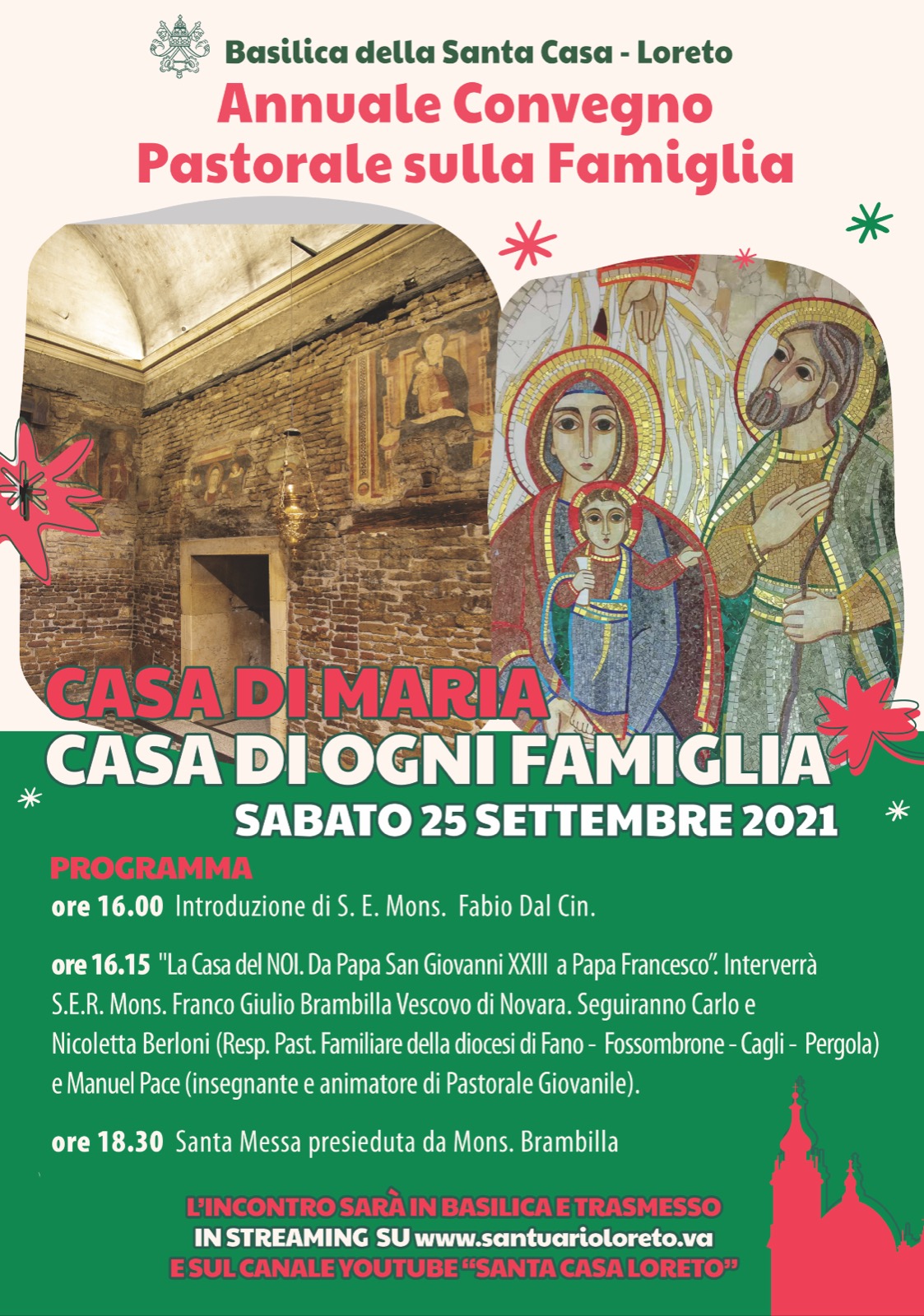 E’ possibile seguire il convegno anche in streaming al canale YouTube “Santa Casa Loreto” o sul sito www.santuarioloreto.va