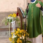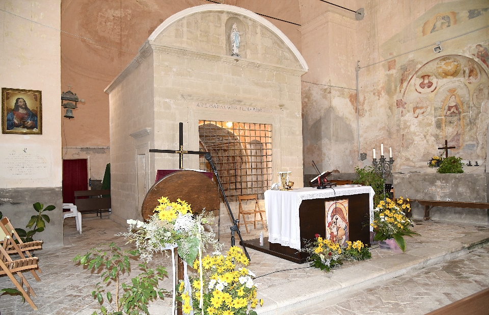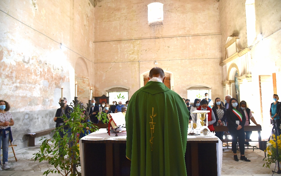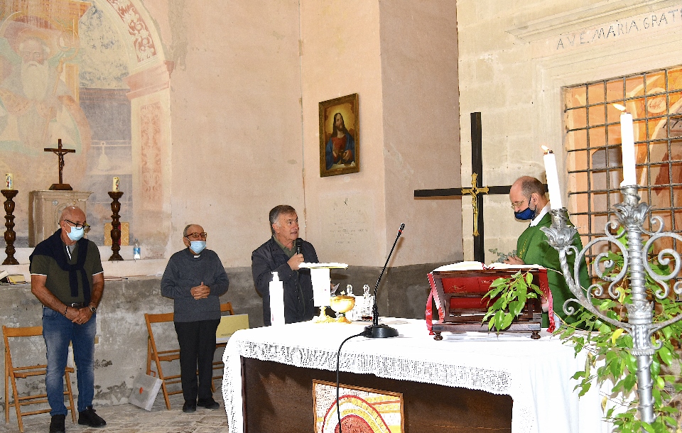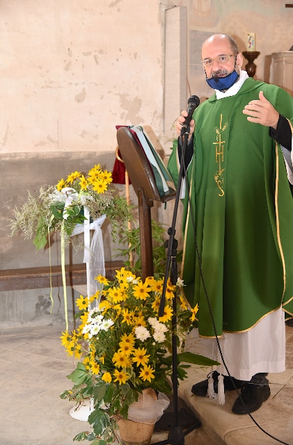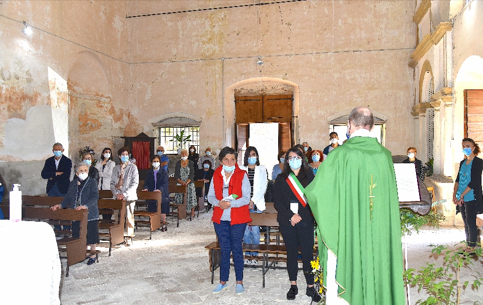 È stato qui ricevuto, in una chiesa che come sempre le bravissime “contradaiole” avevano preparato e infiorato con grande sensibilità e cura, da Lucia Pagliari in rappresentanza dell’Amministrazione Comunale (il Sindaco era impegnato nella Capitale per questioni amministrative) e da Giuseppe Mariucci quale componente del Consiglio Pastorale Parrocchiano! Lo ha accolto anche il carissimo Padre Giovanni Mazzoni!