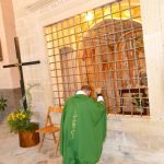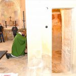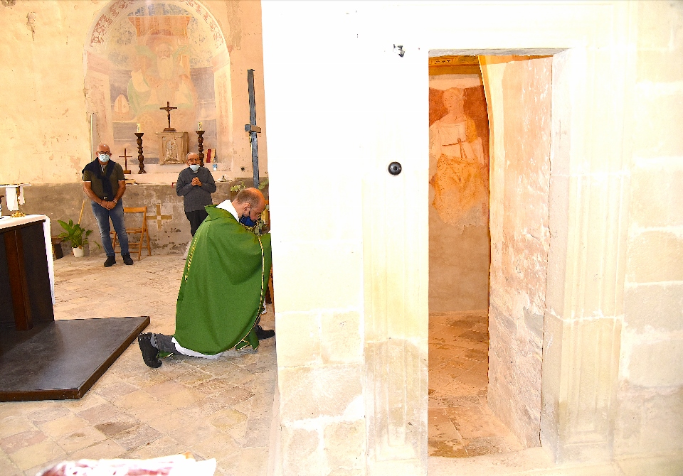 Don Giorgio, chiedendo la benedizione alla Madonna di Santa Maria in Camurano, si è inginocchiato in adorazione dinanzi alla cappellina a Lei dedicata.