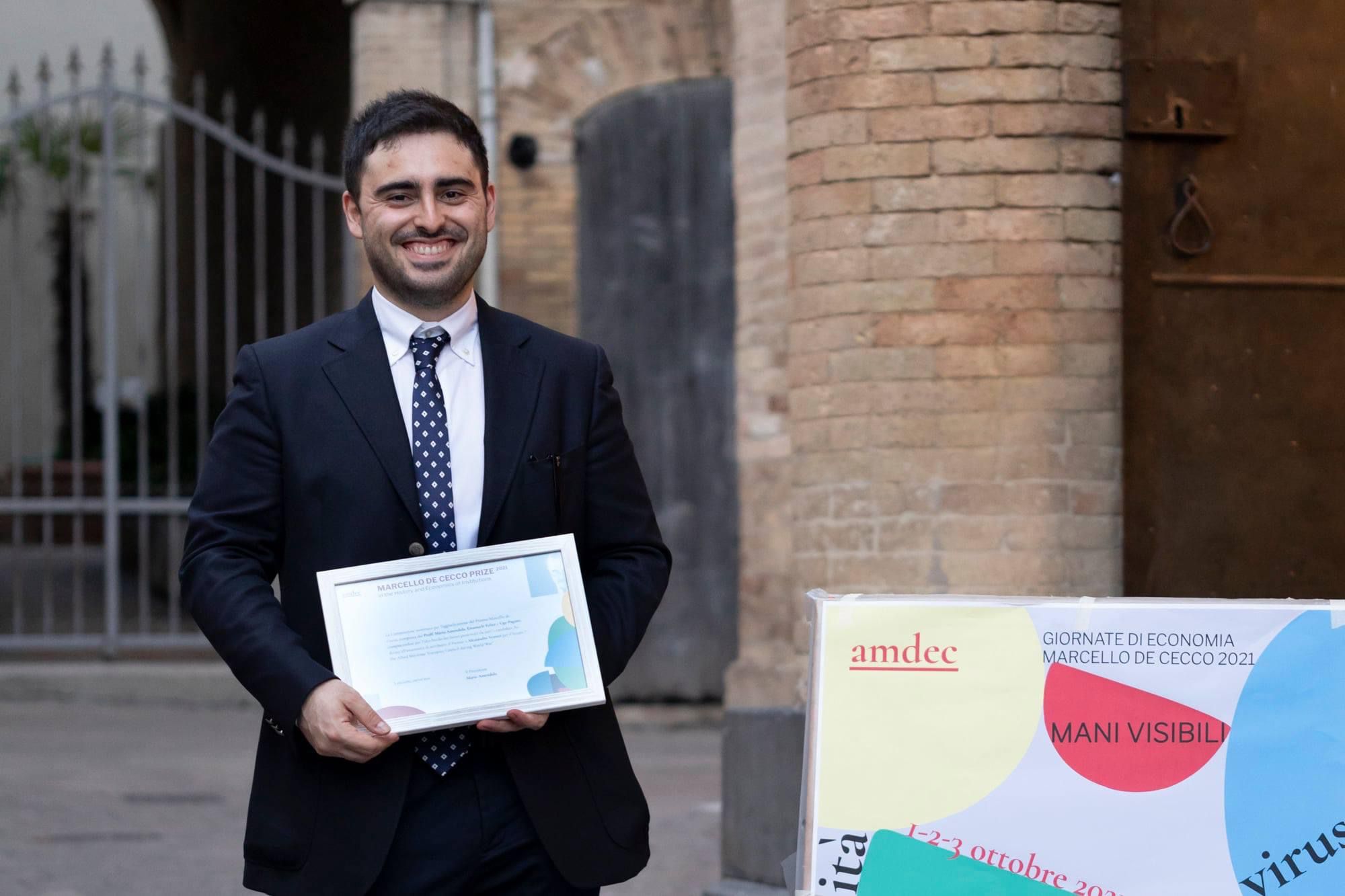 SAN BENEDETTO DEL TRONTO – Presso il teatro Fenaroli di Lanciano, nel pomeriggio di sabato 2 ottobre, il Governatore della Banca d’Italia Ignazio Visco ha consegnato ad Alessandro Venieri, giovane studioso di San Benedetto del Tronto, il “Premio Marcello De Cecco” per il miglior articolo inedito in storia ed economia delle istituzioni. L’elaborato, intitolato “The Allied Maritime Transport Council during the World War”, analizza la parabola storica di un’autorità di cooperazione alleata nata durante la prima guerra mondiale che funse da modello per le successive organizzazioni internazionali (Società delle nazioni, ONU) ed europee (CECA, CEE, UE). Il Premio viene assegnato dall’Associazione Marcello De Cecco (AMDEC), intitolata alla memoria del famoso economista lancianese venuto a mancare nel 2016 e che promuove l’attenzione appassionata della società civile per la pratica della politica economica. La rassegna – dal titolo “Mani Visibili” – ha visto succedersi sul palco, oltre a Ignazio Visco, personalità del calibro di Paolo Baratta, Enrico Giovannini e Fabrizio Barca, e ha affrontato i temi della mobilità sostenibile, della ripresa economica post-Covid e dello sviluppo del Mezzogiorno.