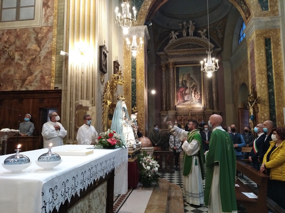A nome della comunità di Acquaviva Picena, Janet Chiappini in rappresentanza del Consiglio Pastorale Parrocchiale ha letto un messaggio per don Pierluigi: “Parafrasando le parole di sant’Agostino vogliamo dire: “Signore, non ti chiediamo perché ci hai tolto don Pierluigi , ma ti ringraziamo per avercelo donato anche solo per due anni”. Caro don Giggi, sei stato un dono prezioso per tutta la comunità, in questo breve periodo hai saputo darci tanto dal punto di vista spirituale e materiale nonostante le limitazioni imposte dalla pandemia e dalla crisi economica. Con la riservatezza che ti contraddistingue, sei entrato in punta di piedi nella vita della nostra comunità di paese e con rispetto ti sei messo in ascolto e all’opera, con la tua passione per l’antico ci hai fatto riscoprire le nostre tradizioni, le hai riportate alla luce, le hai rese belle e la nostra comunità si è rinvigorita perché le tradizioni sono le nostre radici, che se ben curate ci tengono ancorati al terreno nel quale siamo stati seminati. Durante il lockdown ti sei improvvisato archeologo, l’Indiana Jones dei sacerdoti della Diocesi, studiando vecchie carte e rovistando tra i vecchi ricordi impolverati della nostra chiesa, ne hai riportato alla luce la ricchezza materiale e storica, dando a essi un nuovo significato. Con il tuo senso pratico hai saputo fare economia, rivedendo le spese della parrocchia e come un bravo padre di famiglia farebbe, ci hai lasciato con le spalle coperte. Grazie. Hai studiato a fondo la nostra comunità e noi eravamo pronti a ripartire con la tua guida dopo un periodo difficile, ma Dio ha voluto che tu arassi il terreno per un altro sacerdote. Nelle parrocchie i parroci passano, le comunità no e come cristiani continueremo a camminare sulla strada da Colui che deve essere il nostro unico punto di riferimento: Dio, davanti al quale un giorno ci presenteremo con i frutti del nostro operato. Prega, affinché la nostra comunità sappia accogliere don Peppe e affinché, lui che seminerà il terreno che tu hai preparato, sappia prendersi cura di noi. Sei riservato, ma sei sempre stato disponibile con tutti, in egual modo. Ti ricorderemo per le splendide omelie, per il tuo sostare in adorazione davanti al Santissimo o il tuo camminare avanti e indietro in preghiera con la tua comunità durante il Rosario, prima della Messa. Ti ricorderemo sinceramente con affetto e anche tu ricordati di noi ogni tanto. Grazie don e buon viaggio, la tua comunità acquavivana”.