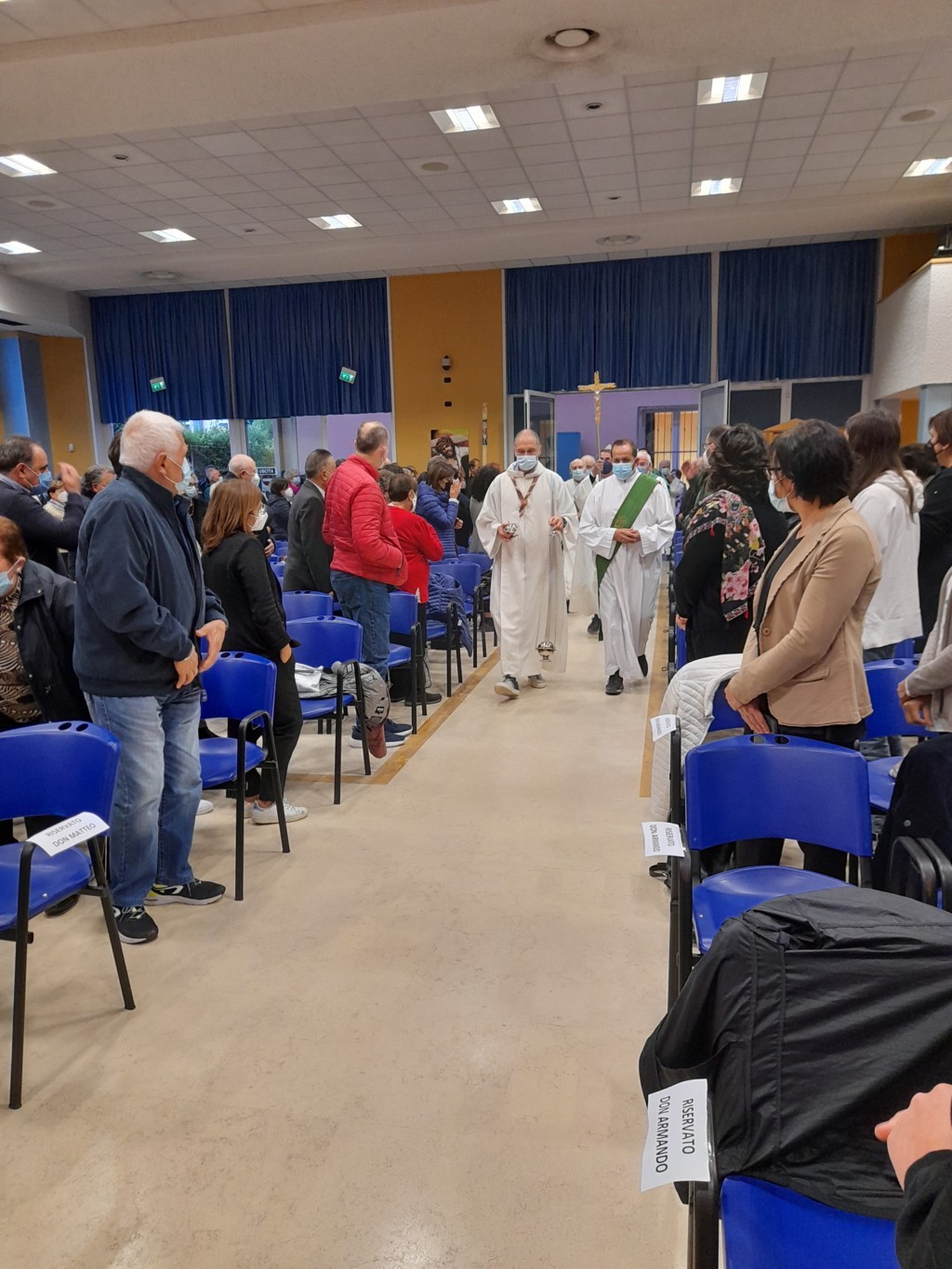 Entrati in Chiesa, all’inizio della Santa Messa, il Vicario Generale della Diocesi, don Patrizio Spina, ha dato lettura delle nomine fatte dal Vescovo Bresciani. Dopo aver invocato l’aiuto dello Spirito Santo sui nuovi parroci, don Armando ha asperso i fedeli e don Matteo ha incensato l’altare.