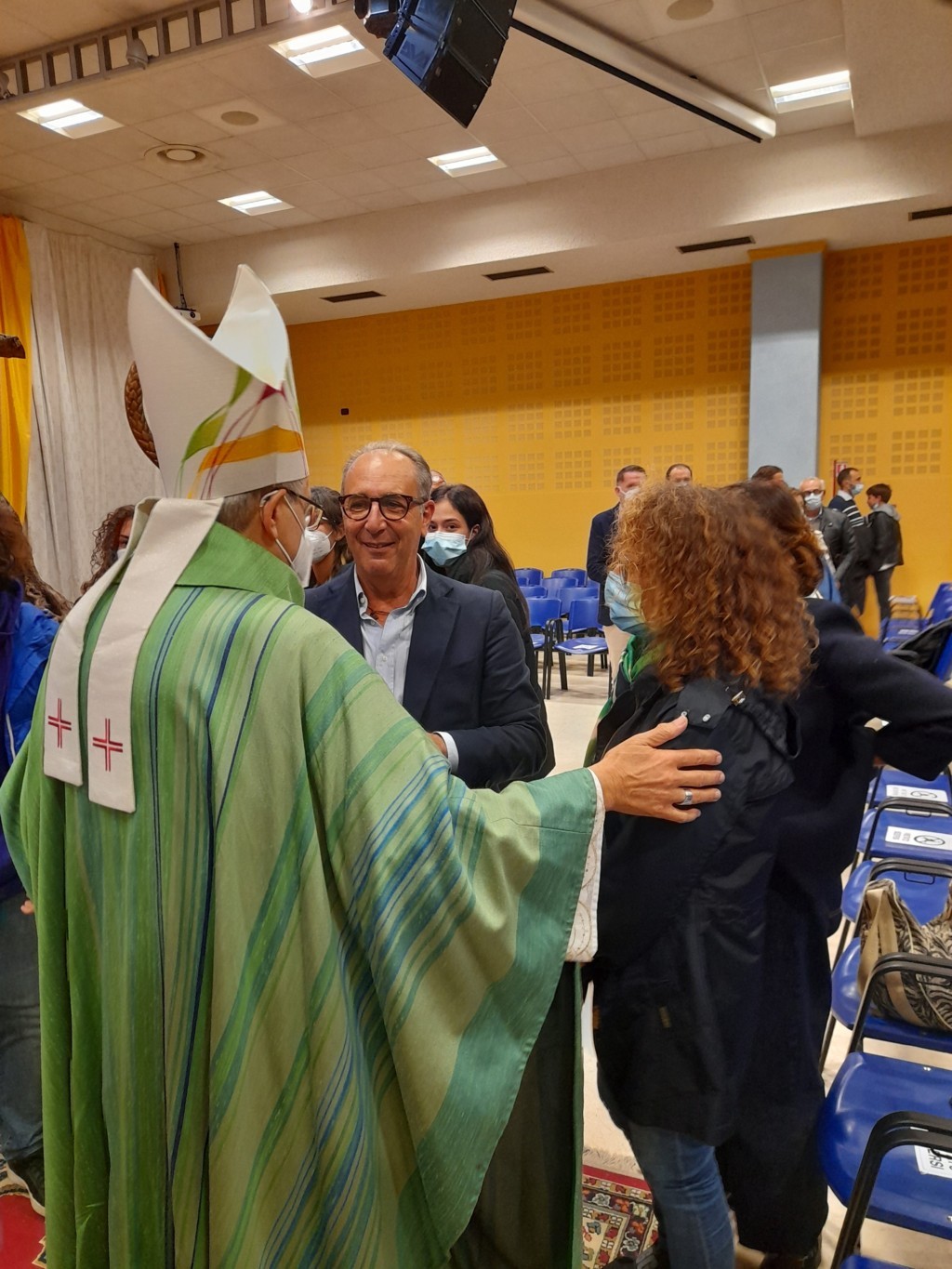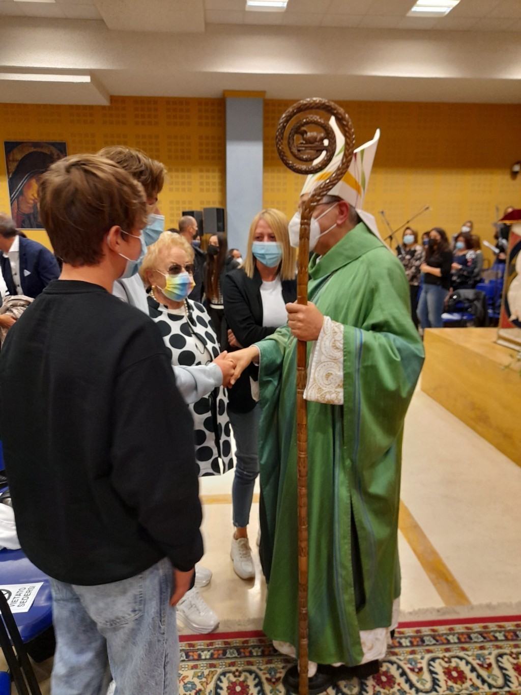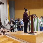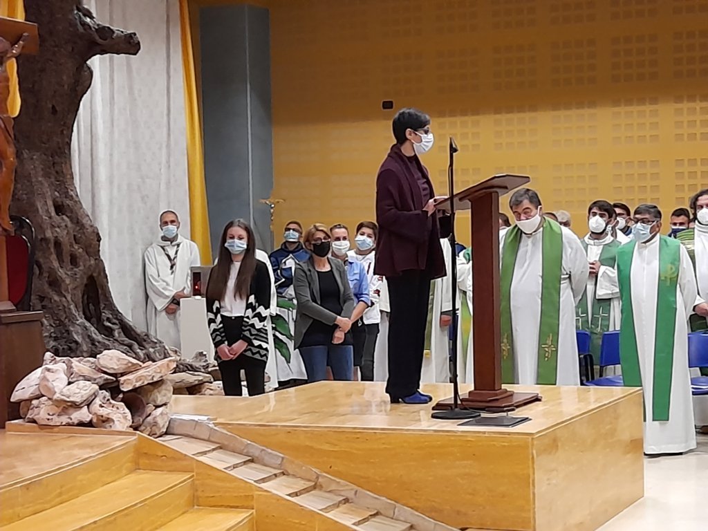 Al termine della celebrazione, Anna Calvaresi, segretaria del Consiglio Pastorale della Parrocchia Regina Pacis, e Alessandro Straccia, segretario del Consiglio Pastorale della Parrocchia Sacro Cuore, in rappresentanza delle due comunità, hanno ringraziato don Gianluca e don Gabriele per il ministero svolto durante gli ultimi mesi e hanno accolto don Armando e don Matteo con parole di benvenuto: “Dopo mesi di profonda difficoltà, vissuti a volte anche con sconforto, siamo finalmente pronti ad iniziare un nuovo percorso. Chiediamo al nostro vescovo di starci vicino. A don Armando e don Matteo chiediamo di prenderci per mano e di mostrarci il cammino, con la speranza che il Signore ci doni un tempo nuovo di crescita spirituale, per continuare a testimoniare la bellezza e la gioia dell’essere cristiani.”