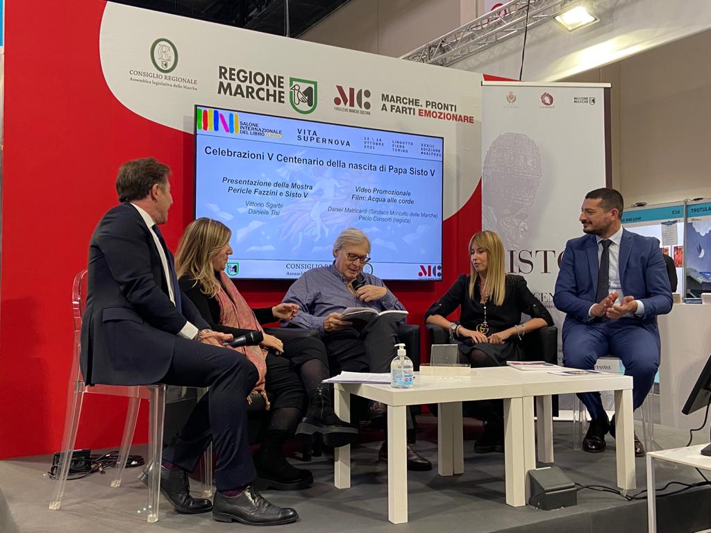 È stato un evento prestigioso quello dedicato alle Celebrazioni per il V Centenario della nascita di Papa Sisto V al Salone del Libro di Torino, alla presenza dell’assessore regionale alla Cultura, Giorgia Latini. L’ospite d’onore Vittorio Sgarbi e Daniela Tisi hanno prima di tutto presentato la mostra (con sede principale al Palazzo Paradisi di Montalto delle Marche) che verrà inaugurata a dicembre su Pericle Fazzini e Sisto V. Entrambi nati a Grottammare e uniti anche dall’ultima opera dello scultore, eretta a Montalto Marche e dedicata proprio al Papa conterraneo. “Sisto V è il Papa intermedio tra la grande stagione del Rinascimento e quella dell’inizio del Seicento – ha evidenziato Sgarbi – l’idea di collegare Fazzini a Sisto V è legata al monumento di Montalto, in cui l’artista rappresenta l’anima del pontefice, più che la sua opera. Fazzini è uno scultore di coscienze. Scolpisce e disegna anime e non figure. È l’interprete perfetto del nostro tempo”.
