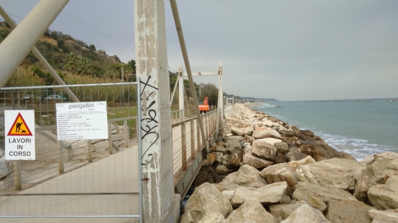 Le opere riguardano un tratto di circa 50 metri del percorso che collega Grottammare a Cupra Marittina, esattamente il tratto tra i due ponti, risultato particolarmente sensibile all’azione erosiva del mare con evidenti abbassamenti della barriera protettiva.
