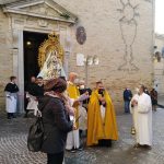 ACQUAVIVA PICENA – Domenica 24 ottobre la comunità di Acquaviva Picena ha onorato la Madonna del Rosario con una processione snodatasi per le vie del centro storico. Al termine della processione i fedeli hanno partecipato alla santa Messa celebrata dal parroco don Giuseppe Giudici con l’assistenza del diacono Giovanni. Nell’omelia don Giuseppe ha detto: “Sappiamo tutti che il Vangelo non è semplicemente la storia della vita di Gesù, la Parola è invece qualcosa di attuale che ha molto da dire alla nostra vita di tutti i giorni. Il miracolo non è al centro del brano del Vangelo che abbiamo ascoltato oggi, al centro c’è invece la luce della fede che Bartimeo ha ricevuto da Gesù. Dobbiamo riflettere sulla figura di questo uomo che passa dai bordi della strada dove mendica, al camminare lungo la strada dietro a Gesù. Gesù ci guarisce dalla nostra cecità, vince le nostre tenebre in modo che noi possiamo vedere in maniera più profonda dentro di noi e la realtà che ci circonda. La fede non è un insieme di comandamenti o cose da fare per mostrarci davanti a Dio, non è solo l’insieme di opere buone, la fede è anche guardare in maniera nuova noi stessi, gli altri e la realtà che ci circonda.