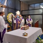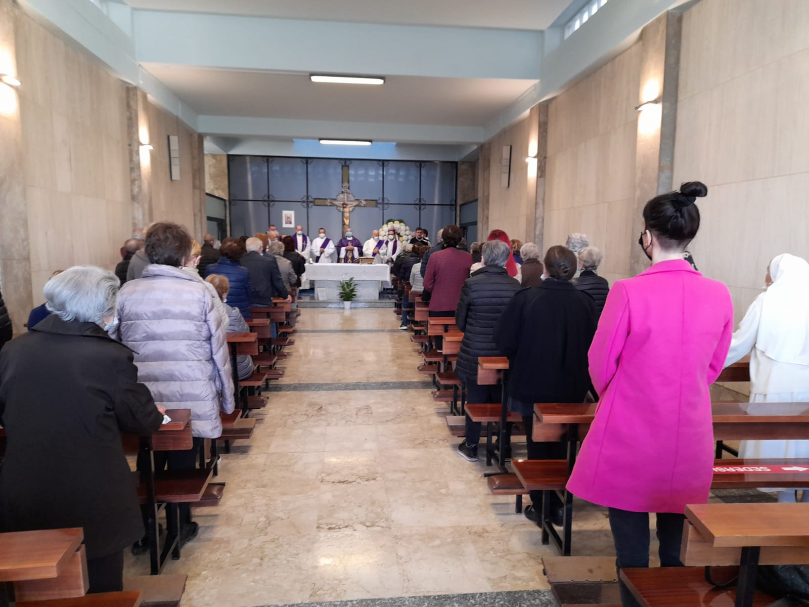 SAN BENEDETTO DEL TRONTO – In un silenzio colmo di commozione e devozione, ieri 2 Novembre, alle ore 15:30, in occasione della ricorrenza della festività dei defunti, il nostro vescovo Carlo Bresciani ha celebrato una Messa presso la cappella del cimitero di San Benedetto del Tronto. Il distanziamento imposto dalle norme anti-covid, non ha permesso a tutti i fedeli presenti di entrare in cappella, quindi una folla composta ed ordinata ha partecipato alla celebrazione occupando anche gli spazi antistanti.