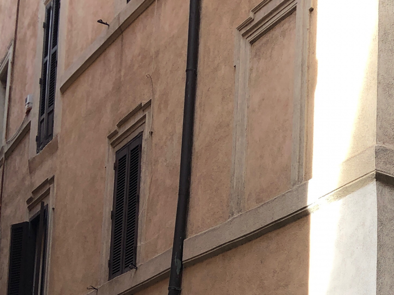 Nel 1599, due anni dopo il processo, Caravaggio fu chiamato a dipingere la Vocazione di San Matteo e il Martirio di San Matteo per la Cappella Contarelli in San Luigi dei Francesi. Le due opere a nostro avviso costituiscono una sorta di revival di quanto accaduto la sera di quell’8 luglio 1597. Cerchiamo di dimostrarlo, partendo dalla Vocazione di San Matteo. Nel quadro compaiono in tutto sette personaggi. A destra Cristo e San Pietro sono rappresentati con fattezze e attributi iconografici tradizionali: i volti caratteristici, la veste rossa e blu di Gesù e del Principe degli Apostoli gialla e blu. Dei cinque personaggi seduti al tavolo, fino ad ora ne sono stati identificati tre. Nel volto di San Matteo possiamo riconoscere i lineamenti di Enrico IV di Navarra (si veda QUI), il re francese che il 25 luglio 1593, presso la chiesa di Saint Denis a Parigi, aveva abbandonato il calvinismo per riabbracciare la fede cattolica (si ricorderà la nota espressione «Parigi val bene una Messa»!). A lui Papa Clemente VIII aveva scritto nella bolla di riabilitazione parole che evidentemente hanno influito sulla realizzazione del dipinto: «Noi consideriamo la sovrabbondanza della grazia divina nella tua conversione e riflettiamo come tu, dalla più densa oscurità degli errori e delle eresie, quasi da un abisso del male, per un atto potente della destra del Signore, sia venuto alla luce della verità». Il giovane che poggia il braccio destro sulla spalla di San Matteo è il ventiduenne Mario Minniti, modello di Caravaggio presente in molte altre opere e conosciuto pochi anni prima presso la bottega del pittore siciliano Lorenzo Carli (che si trovava dove oggi c’è Via della Scrofa 80). Infine il giovane di spalle che sta per impugnare la spada è il diciannovenne bergamasco Francesco Bonieri, anch’egli sovente presente nella produzione artistica di Caravaggio (fig. 1) e coinquilino di Caravaggio quando il pittore abitava in quella che oggi è Via del Divino Amore 19. Sono invece rimasti nell’ombra dell’anonimato i due personaggi all’estrema sinistra (fig. 2). Grazie alla deposizione di Costantino Spada, possiamo pensare che il giovane seduto sia Prospero Orsi, essendo questo personaggio «di statura piccola de poca barbetta negra, d’età de 25 o 28 anni». Se infatti si immagina di mettere in piedi questo personaggio, si potrà constatare che egli in effetti non sia molto alto, il suo volto è adornato con un accenno di barba e l’età corrisponde a quella descritta nella testimonianza. Fra l’altro il modello sembrerebbe essere lo stesso che Caravaggio utilizzerà per dipingere la Vocazione di Paolo nella Cappella Cerasi. Invece la figura in piedi potrebbe essere proprio Costantino Spada, poiché sappiamo dalle fonti di archivio che Spada è nato nel 1543 e, dunque, nel 1599 aveva 56 anni, un’età compatibile con quella del personaggio raffigurato. Inoltre il gesto che sta compiendo, quello di inforcare gli occhiali, ci fa pensare al suo lavoro di intenditore e rivenditore di quadri, una sorta di Sgarbi di fine Cinquecento! Non possiamo poi dimenticare che la fortuna di Caravaggio è strettamente legata alla collaborazione professionale con Costantino Spada, poiché la bottega di quest’ultimo sorgeva fra le dimore del Cardinal Francesco Maria del Monte e del Marchese Vincenzo Giustiniani che da lì a poco sarebbero diventati committenti e protettori del pittore. Insomma, Caravaggio aveva più di un motivo per dipingere l’uomo al quale doveva – se si vuole, per banali circostanze – il suo successo. Grazie al legame con Costantino Spada, Caravaggio riceverà il compito di realizzare la Madonna dei pellegrini a Sant’Agostino: infatti la moglie di Spada, Caterina Gori, era la sorella del monaco agostiniano Giovanni Battista Gori che risiedeva presso il monastero di Via della Scrofa. Ma c’è di più: il luogo dove si svolge la scena potrebbe essere proprio quello dell’Osteria della Lupa dove Caravaggio, Costantino Spada e Prospero Orsi si erano recati a cenare quella famosa sera dell’8 luglio 1597. Ce ne accorgiamo dal particolare della finestra con una sola anta ad incasso: se ci si reca in Via dei Prefetti – dove l’Osteria della Lupa era ubicata fino al 1888 – si potrà notare che le finestre del palazzo sono del tutto simili a quella della nostra tela (fig. 3).