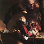Hans Urs von Balthasar, uno dei più grandi teologi del Novecento, riguardo allo scrittore francese Charles Peguy ha affermato: «Non si è mai parlato così cristiano». L’acuta affermazione prende le mosse dal fatto che il modo di scrivere di Peguy è molto carnale, poiché il celebre autore vede in ciò che è pienamente umano la massima manifestazione del divino. Una tale concezione corrisponde alla visione cristiana della vita, intrisa fino al midollo di quotidianità, di ferialità, di personaggi semplici: basta pensare alle parabole di Gesù che hanno sempre per sfondo la vita ordinaria della gente del suo tempo, impegnata nell’attività agricola o della pesca. Si può dire che il Nazareno abbia veicolato il messaggio del Regno di Dio attraverso figure e immagini attinte dal “regno degli uomini”. In tal senso, quello che Balthasar ha affermato nel campo della letteratura di Peguy, si può tranquillamente asserire di Caravaggio nel campo dell’arte: mai prima di Michelangelo Merisi fatti, circostanze, luoghi, compagnie di amici hanno così prepotentemente influito sulla produzione artistica di quei pittori che con il loro talento hanno avuto la pretesa di parlare del Mistero di Dio attraverso il loro genio. Alla luce di queste considerazioni ci accingiamo a leggere le prime due opere pubbliche di Caravaggio, la Vocazione di San Matteo e il Martirio di San Matteo, in un modo nuovo e originale. Come cercheremo di documentare, il pittore lombardo ha messo in scena due episodi dell’apostolo Matteo, legandoli a una vicenda strettamente personale. Partiremo proprio da questo episodio per capire, poi, il peso che esso ha avuto nella realizzazione delle due celeberrime tele.