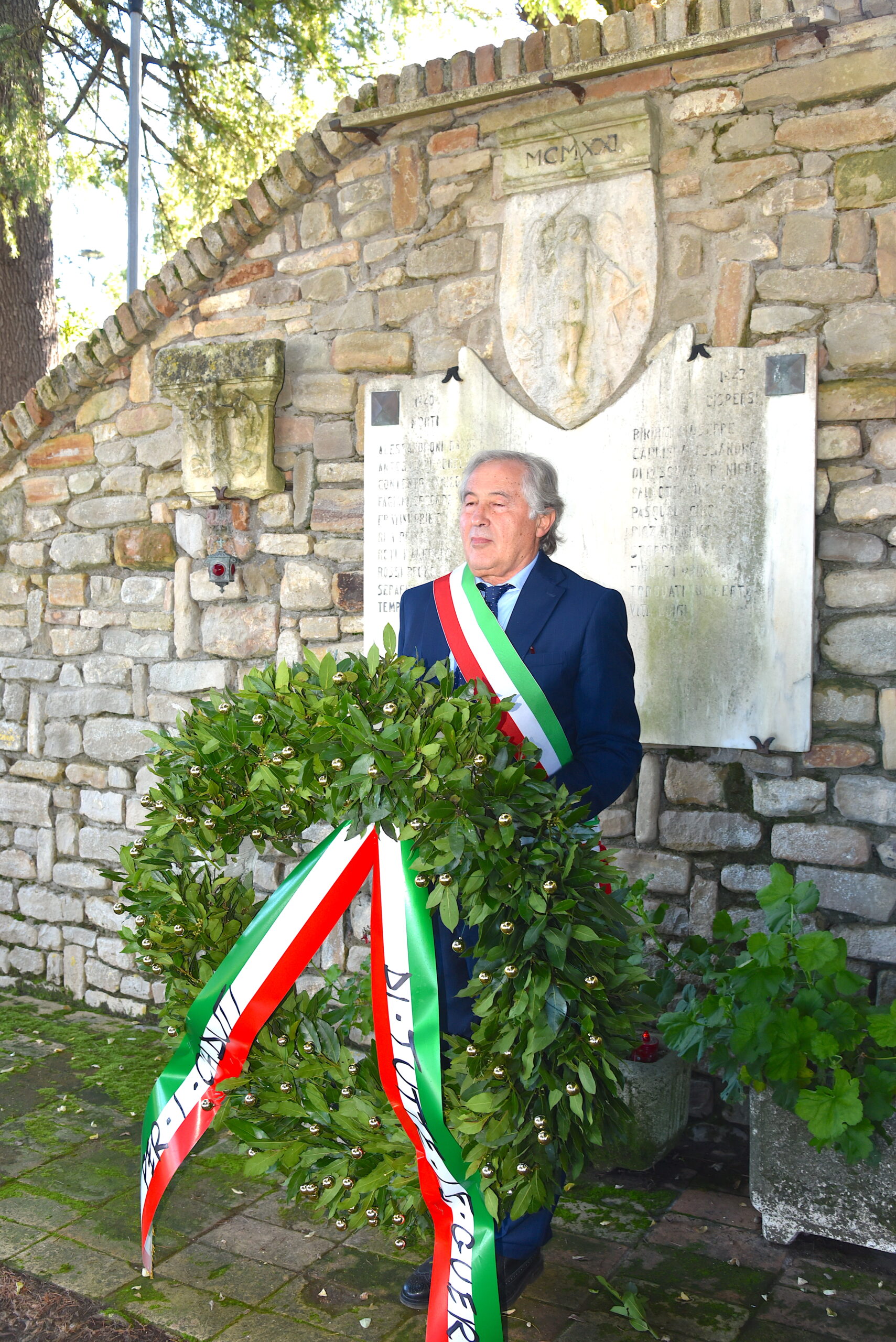 Appena giunti, al suono della tromba del solito grande Sandro Chiurchiù, il Sindaco procedeva alla deposizione di una Corona di alloro benedetta da padre Giovanni. La cerimonia era sottolineata dalle preghiere preparate, per l’occasione, dal Gruppo di bambine/i dell’oratorio!