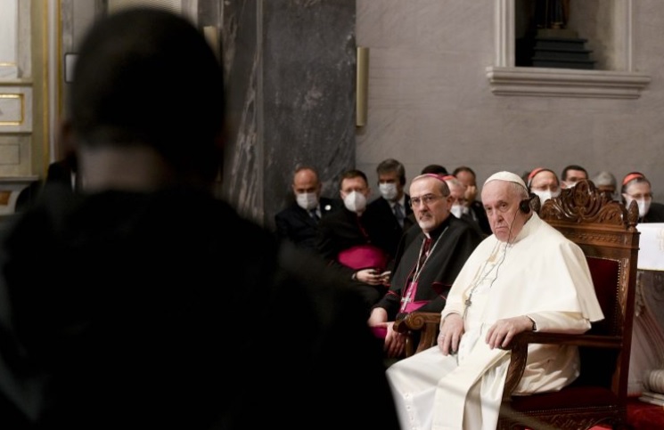 “Fili spinati per non lasciare entrare il rifugiato. Quello che viene a chiedere libertà, pane, aiuto, fratellanza, gioia e che sta fuggendo dall’odio si trova davanti un odio chiamato filo spinato. Che il Signore risvegli la coscienza di tutti noi davanti a queste cose. Non possiamo tacere e guardare dall’altra parte in questa cultura dell’indifferenza”. Parole di fortissima denuncia quelle pronunciate a braccio da Papa Francesco, al termine del suo discorso tenuto durante la preghiera ecumenica con i migranti che si è svolta nella chiesa di Santa Croce di Nicosia. Quattro giovani migranti hanno raccontato la loro storia e subito dopo, il Papa ha preso la parola. “Ascoltando voi, guardano voi in faccia, la memoria va oltre, va alle sofferenze. Voi siete arrivati qui, ma quanti dei vostri fratelli e delle vostre sorelle sono rimasti in strada. Quanti disperati iniziano il cammino in condizioni molto difficili e precarie e non sono potuto arrivare. Possiamo parlare di questo Mare che è diventato un grande cimitero. Guardando voi, guardo le sofferenze del cammino, tanti che sono stati rapiti, venduti, sfruttati, ancora in cammino e non sappiamo dove. E la storia di una schiavitù universale. Noi guardiamo cosa succede e il peggio è che ci stiamo abituando”. Il Papa ha poi fatto riferimento ai barconi affondati al lago delle nostre coste: “Questo abituarsi è una malattia grave, una malattia molto grave e non c’è antibiotico contro questa malattia. Dobbiamo andare contro questo vizio dell’abituarsi a leggere queste tragedie nei giornali o sentirle nei media. Guardando voi, penso a tanti che sono dovuti tornare indietro perché li hanno respinti e sono finiti nei lager, veri lager, dove le donne sono vendute, gli uomini torturati e schiavizzati”. Non sono storie del secolo scorso: “Sta succedendo oggi”, ha incalzato il Papa. “Ho guardato testimonianze filmate di questo. Posti di tortura, di vendita di gente. Lo dico perché è responsabilità mia aiutare ad aprire gli occhi: la migrazione forzata non è una abitudine quasi turistica. Il peccato che abbiamo dentro ci spinge a pensarla così. Povera gente, povera gente… ma poi cancelliamo tutto. È la guerra di questo momento, è la sofferenza di fratelli e sorelle, che noi non possiamo tacere. Coloro che hanno dato tutto quello che avevano, per salire su un barcone di notte, senza sapere se arriveranno. E poi tanti respinti per finire nei lager, veri posti di confinamento, di tortura e di schiavitù. Questa è la storia di questa civiltà sviluppata che chiamiamo Occidente”.