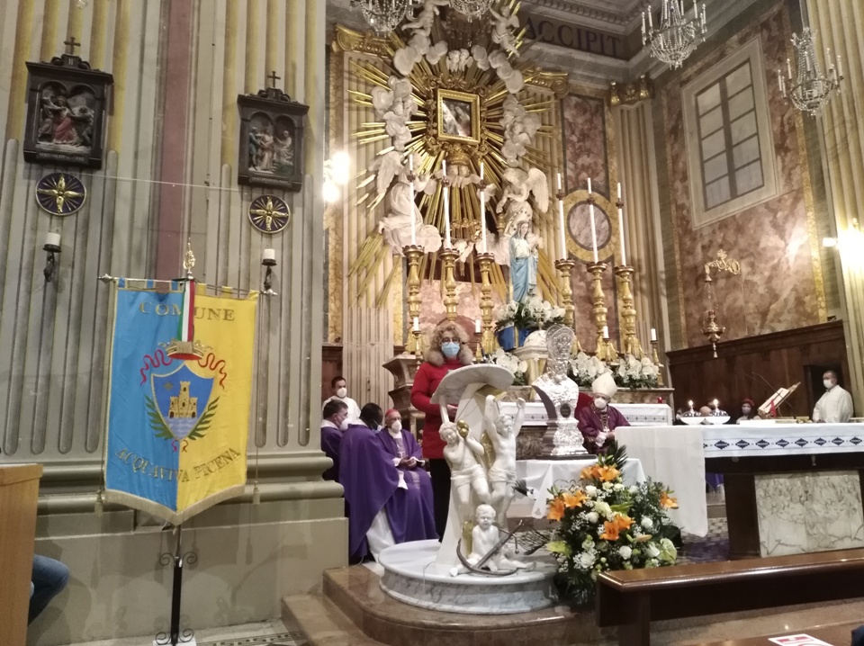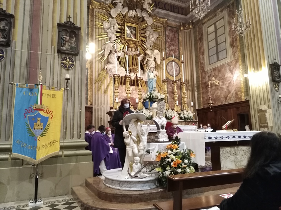 Nell’omelia Mons. Carlo Bresciani ha detto: “Oggi ricordiamo il santo patrono Nicola, lo facciamo con la preghiera e in ascolto della Parola di Dio, ma anche in ascolto di ciò che il Patrono ha da insegnarci. La sua vita esemplare, quello che lui ha vissuto, quello che lui ha fatto lo rende ora per noi, un maestro. Un maestro per questa comunità di Acquaviva. San Nicolò non si inventato né la sua vita, né quello che ha insegnato, ma lo ha appreso a sua volta, l’ha appreso da Dio. Lui è maestro perché ha annunciato il Vangelo e l’ha vissuto con la sua vita. Noi sappiamo che san Nicolò è ricordato come colui che è stato ricco nel donare, tanto è vero che poi dopo è diventato l’ispiratore della figura di Babbo Natale. Quello su cui dobbiamo soffermarci noi, è su quello che san Nicolò, vescovo di Myra, ha fatto: non si è chiuso in sé stesso, ma usando i beni che gli provenivano dalla famiglia, ha aiutato tutte quelle persone che si trovavano in difficoltà. Non si è chiuso in sé stesso, ma ha imitato Gesù facendosi vicino al prossimo e ha attuato quella carità di cui parla san Paolo nella Seconda Lettura. Ha vissuto donando agli altri, ma non solo beni materiali, anche se sì sono importanti, san Nicolò ha donato qualcosa di molto più grande: ha donato la Parola di Dio. questo è importante perché ci dice che, come comunità, sappiamo camminare insieme quando non pensiamo solo a noi stessi, ma siamo attenti anche agli altri. La Chiesa italiana, anche per volontà di papa Francesco, ha iniziato un cammino sinodale, un cammino non tanto alla ricerca di idee, ma un cammino insieme all’interno della nostra comunità ecclesiale, intanto, camminare insieme all’interno delle parrocchie, dei vari gruppi, dei vari movimenti…per camminare insieme bisogna imparare a donare qualcosa all’altro, come ha fatto san Nicolò.