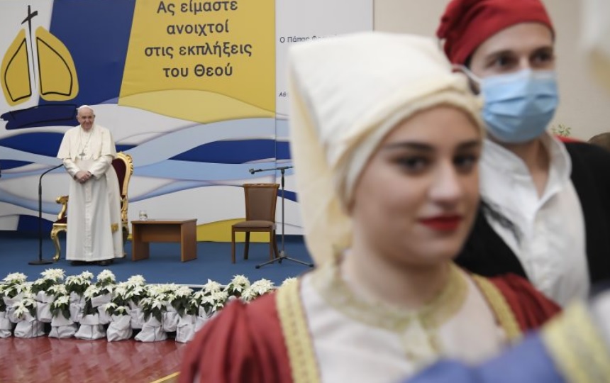 spiega il Papa nella Messa alla Megaron Concert Hall di Atene, davanti ad oltre duemila persone. “Sognate la fraternità”, l’imperativo consegnato ai giovani greci, incontrati nella scuola delle Orsoline nell’ultimo appuntamento pubblico del viaggio in Grecia. “Il senso della vita non è restare sulla spiaggia aspettando che il vento porti novità”, ha ammonito Francesco evocando la figura di Telemaco, controcorrente in un ondo come quello di oggi, dove “tanti oggi sono molto social ma poco sociali”: “La salvezza sta in mare aperto, sta nello slancio, nella ricerca, nell’inseguire i sogni, quelli veri, quelli ad occhi aperti, che comportano fatica, lotta, venti contrari, burrasche improvvise. Ma non lasciarsi paralizzare dalle paure, sognare in grande! E sognare insieme!”.