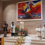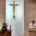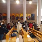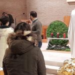 Dopo la lettura del Vangelo secondo Luca – e precisamente del passo in cui l’angelo Gabriele annuncia a Maria la sua futura maternità – don Lanfranco Iachetti ha commentato: “È provvidente stasera guardare la Madonna che si è quasi messa in sintonia con la celebrazione.