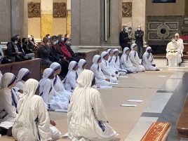 “In un mondo così difficile, come ci possono aiutare i racconti biblici che parlano di cielo e bellezza? E per rispondere la Chiesa oggi dice a tutti di guardare a Maria, la piccola e semplice donna di Nazareth che è riflesso di Dio e bellezza di ogni bellezza. Una bellezza di una luce che non abbaglia, ma attrae. Maria è come uno specchio con due facce: una che riflette Dio, il suo amore, la sua tenerezza, la sua misericordia e e nell’altra vediamo riflessi noi, che come lei abbiamo ricevuto il seme di vita eterna”. Lo ha detto ieri nella basilica di San Giuseppe al Trionfale a Roma il card. Francesco Montenegro, membro della Congregazione delle cause dei santi e del Dicastero per il servizio dello sviluppo umano integrale, nel corso della celebrazione della professione perpetua di 18 suore appartenenti all’ordine delle Missionarie della carità. Le suore, provenienti da ogni parte del mondo, sono giunte a Roma per la celebrazione e detto il loro “Sì” sono ripartite verso le “periferie del mondo”. Quelle periferie tanto care a Santa Madre Teresa di Calcutta, fondatrice delle Missionarie della carità.