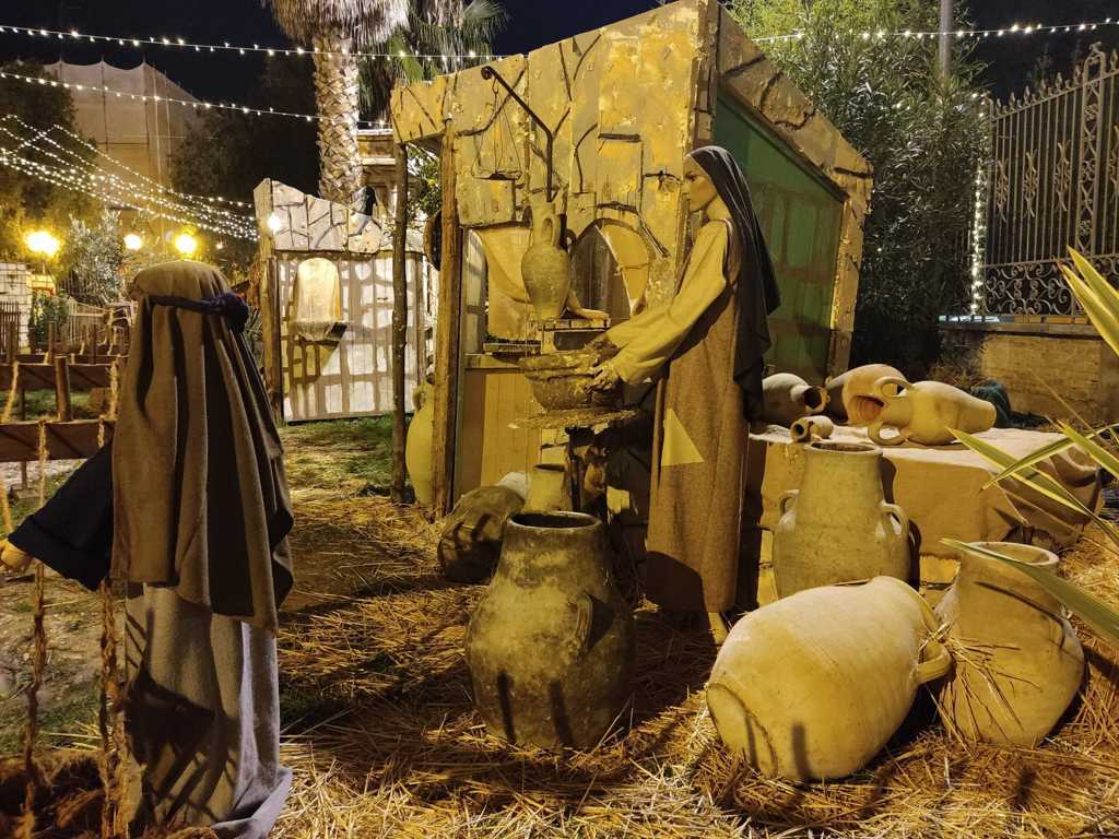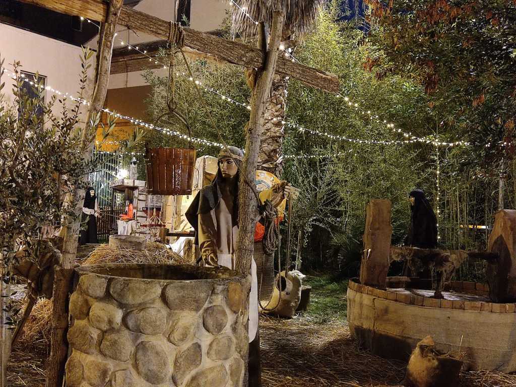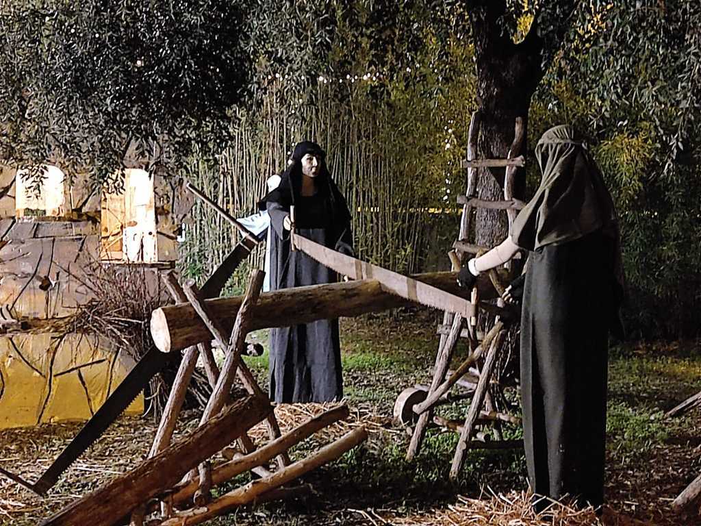 Sedici sono le scene che abbiamo rappresentato. – ha proseguito il presidente Rosati – Le strutture in legno sono le stesse di sempre, così come gli attrezzi di lavoro, le stoviglie e tutti gli utensili dell’epoca. La vera novità riguarda i personaggi: non più figuranti in carne ed ossa, bensì manichini acquistati ad Aprilia cui abbiamo fatto indossare abiti che sono una fedelissima riproduzione di quelli esistenti al tempo di Gesù. Non racconto quali particolari scene abbiamo realizzato per non rovinarvi la sorpresa, tuttavia vi diamo un consiglio: anche se il Presepe è visitabile in qualsiasi orario del giorno, noi organizzatori suggeriamo di andare ad ammirarlo nel tardo pomeriggio, quando le luci del crepuscolo, unite alle luci artificiali che abbiamo allestito, rendono le scene ancora più suggestive.