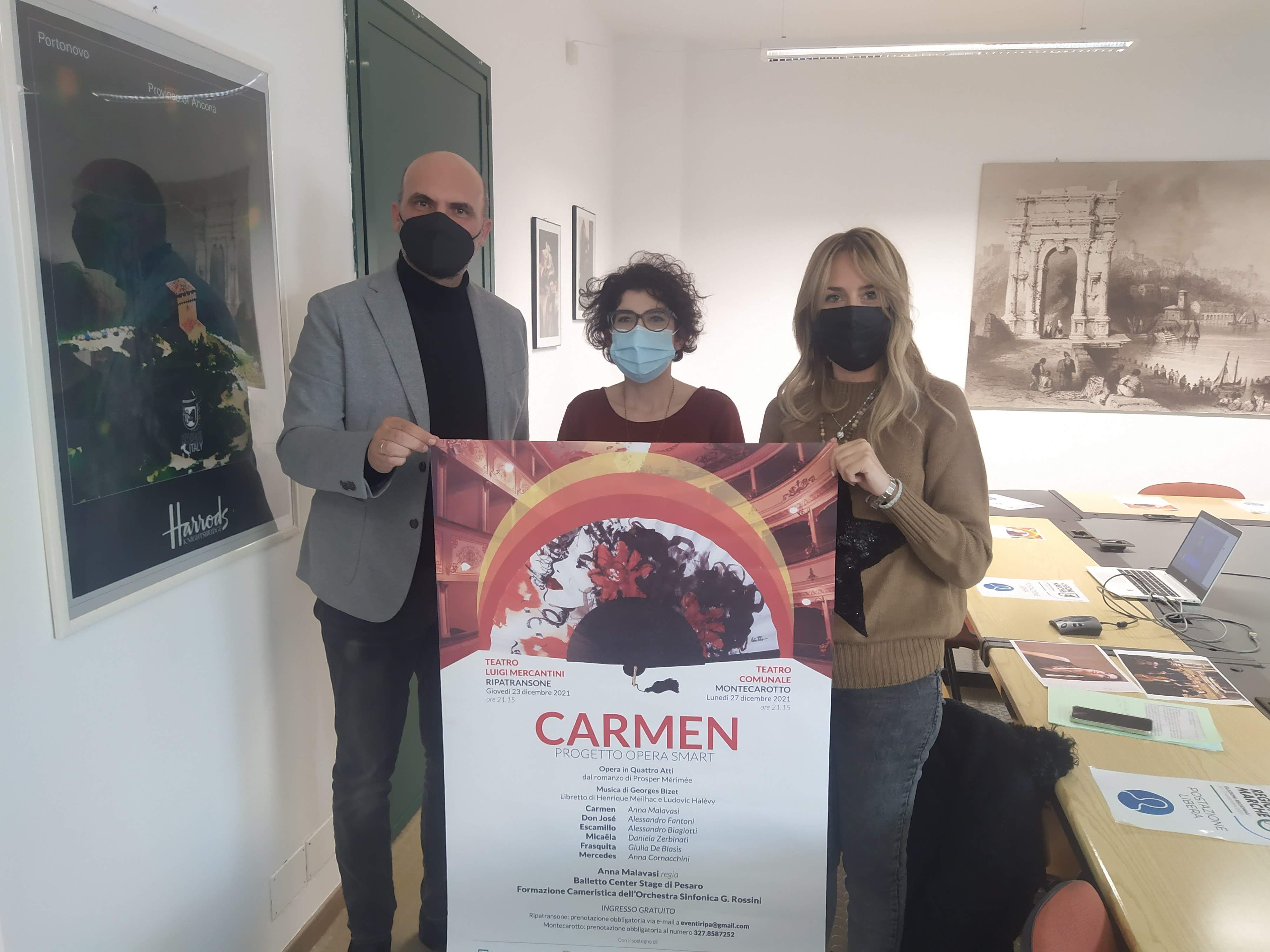 La “Carmen” in versione smart sarà allestita in due importanti teatri storici delle Marche. Al Teatro “Luigi Mercantini” di Ripatransone (AP) andrà in scena giovedì 23 dicembre alle 21.15, mentre al Teatro Comunale di Montecarotto (AN) è in programma nella serata di lunedì 27 dicembre, alle 21.15.