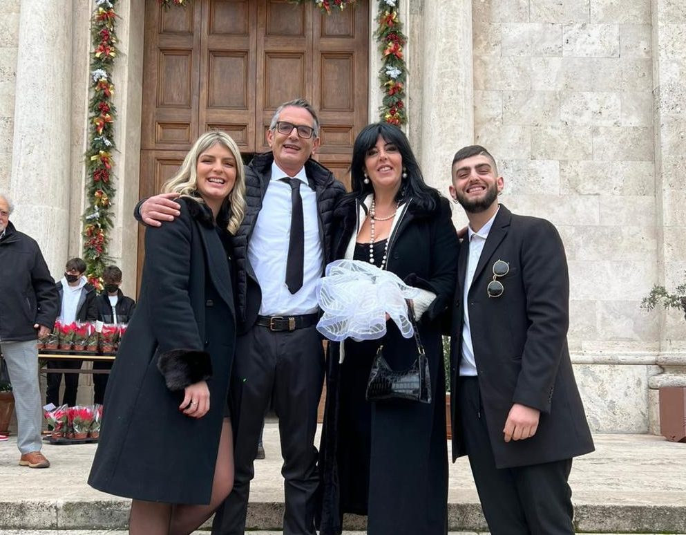 Tra le famiglie presenti durante la celebrazione, una in particolare ha festeggiato i 25 anni di matrimonio. Si tratta di Pasquale Massi e Roberta Ricci, rispettivamente di 55 e 47 anni, genitori di due figli, Angela e Domenico di 25 e 19 anni. Queste le parole dei due coniugi: “Il nostro anniversario è stato il 13 Aprile, ma, essendo il nostro territorio zona rossa in quel periodo, non è stato possibile per noi fare nulla. Così abbiamo deciso di rinviare tutto al 26 Dicembre, festa della famiglia, una ricorrenza molto importante per noi, arrivati ad un traguardo ragguardevole che purtroppo al giorno d’oggi sembra sempre più difficile raggiungere. Non sempre è stato facile: ci sono stati sia momenti stupendi sia difficoltà e problemi da affrontare, ma lo abbiamo fatto insieme, tenendo sempre stretto quel filo che ci unisce. In ogni occasione abbiamo cercato la forza l’uno nell’altra, perché anche il peso più grande, se condiviso, si porta meglio. L’amore, che non è mai scemato, ci ha fatto superare ogni cosa. Ci sono voluti umiltà, comprensione e rispetto: motivi per lasciarsi, infatti, si possono trovare ogni giorno, ma la vittoria è proprio riuscire a superarli! Abbiamo cercato di trasmettere questi valori anche ai nostri figli ed è per questo motivo che, quando c’è stato da ridere, abbiamo riso in quattro, così come, quando c’è stato da piangere, lo abbiamo fatto in quattro. Questo è stato il nostro segreto. Ad oggi possiamo dire di non essere la famiglia del Mulino Bianco – quella esiste solo in tv! – ma di certo rifaremmo tutto quello che abbiamo fatto, compresi i momenti bui, per arrivare ad essere la famiglia che siamo oggi. Cogliamo l’occasione per ringraziare Don Gianni che è stato il nostro parroco per tantissimi anni e ha visto crescere i nostri figli. Nelle sue omelie noi abbiamo sempre trovato le risposte ai nostri momenti difficili, perciò oggi la sua celebrazione è stata per noi un dono immenso.”