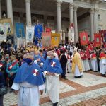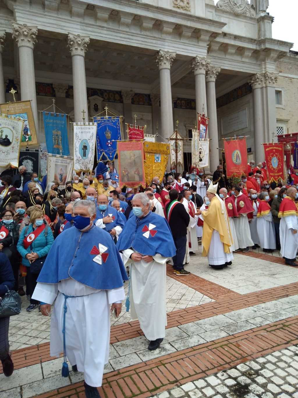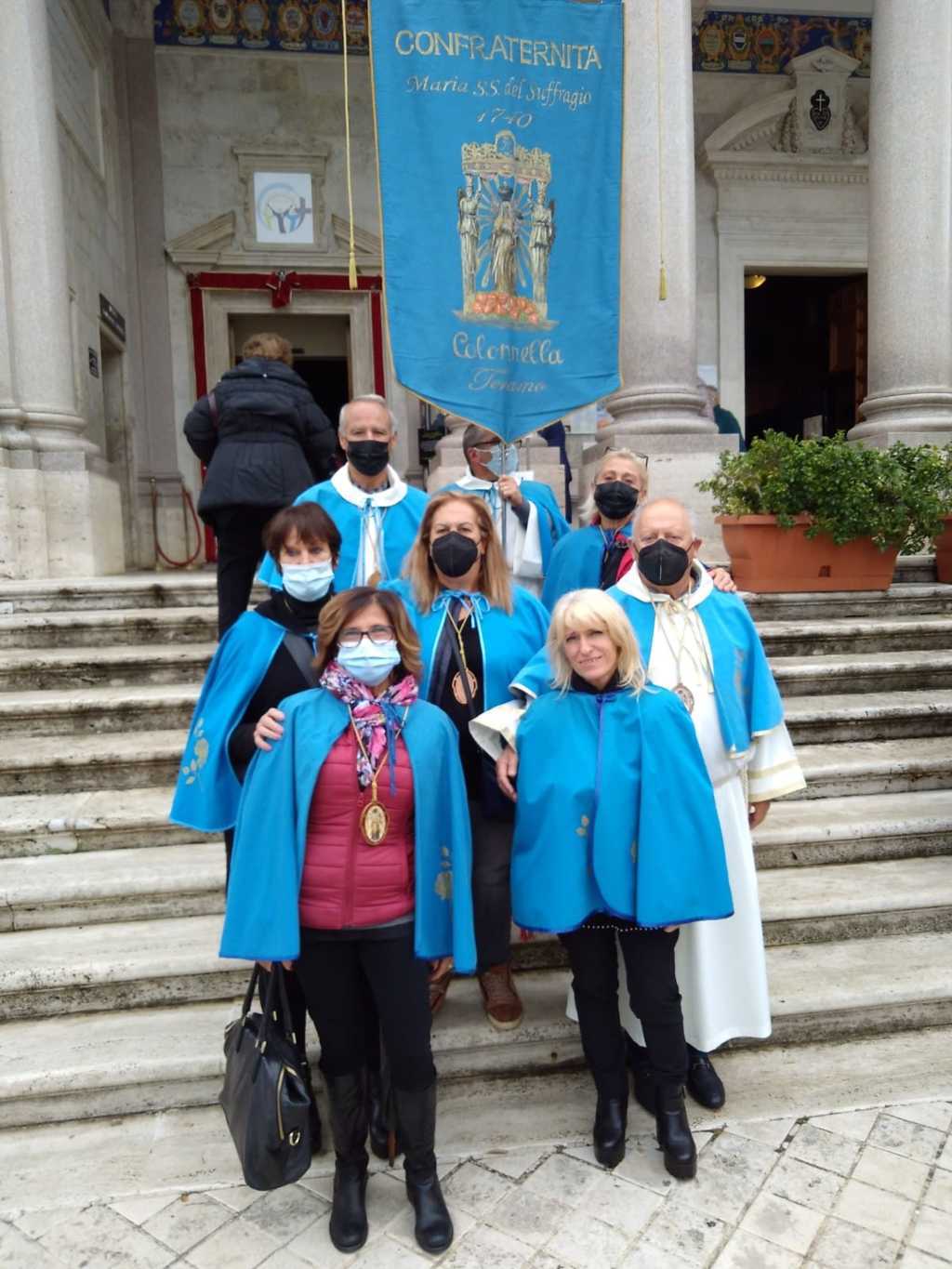 “Ci sono molte altre manifestazioni di fede e di pietà – ha proseguito il priore Reganatini – come, ad esempio, la festa di San Gabriele dell’Addolorata, che costituisce per la nostra Confraternita un altro momento importante di aggregazione e comunione. La comunità colonnellese ha sempre manifestato una grande devozione nei confronti del santo patrono d’Abruzzo, della Gioventù Cattolica Italiana e della città di Martinsicuro. Per questo motivo abbiamo lavorato tantissimo per avere le reliquie di San Gabriele qui a Colonnella e finalmente nel Novembre 2018 ci siamo riusciti. Durante l’estate appena trascorsa, una delegazione della nostra Confraternita ha partecipato ai festeggiamenti per il centenario dalla canonizzazione del santo. In quell’occasione ci siamo recati al santuario di Isola del Gran Sasso insieme ad altre 38 Confraternite provenienti da tutta Italia. È stato bellissimo poter partecipare alla celebrazione in comunione di spirito sia con i molti confratelli presenti sia con quelli lontani rimasti a casa. Abbiamo colto l’occasione per ringraziare il nostro San Gabriele e abbiamo preso accordi con il nuovo Rettore padre Dario per concordare una celebrazione da tenersi il prossimo 30 Gennaio 2022 al santuario di San Gabriele, Covid permettendo, a cui parteciperanno tutti i confratelli e le consorelle, il nostro parroco don Dino, i sindaci di Colonnella e Isola del Gran Sasso, insieme a tutti i fedeli che vorranno partecipare. Durante la solenne Messa verrà benedetta la gigantografia del Santo che la comunità colonnellese ha donato al santuario lo scorso anno e che è già esposta all’ingresso del portone centrale della nuova basilica.”