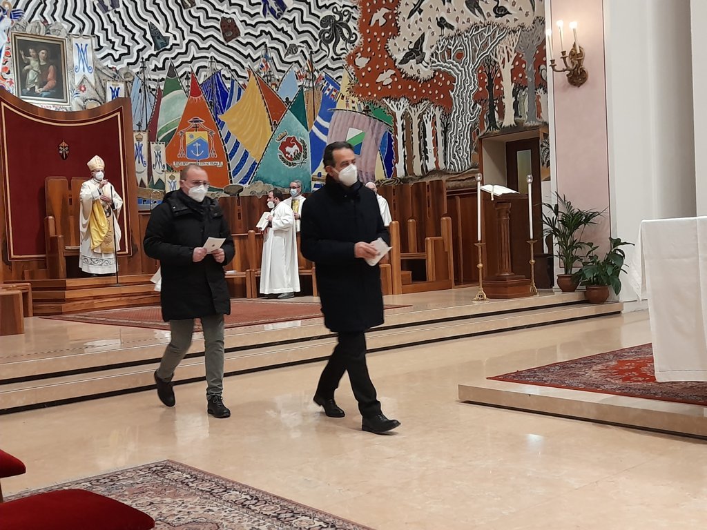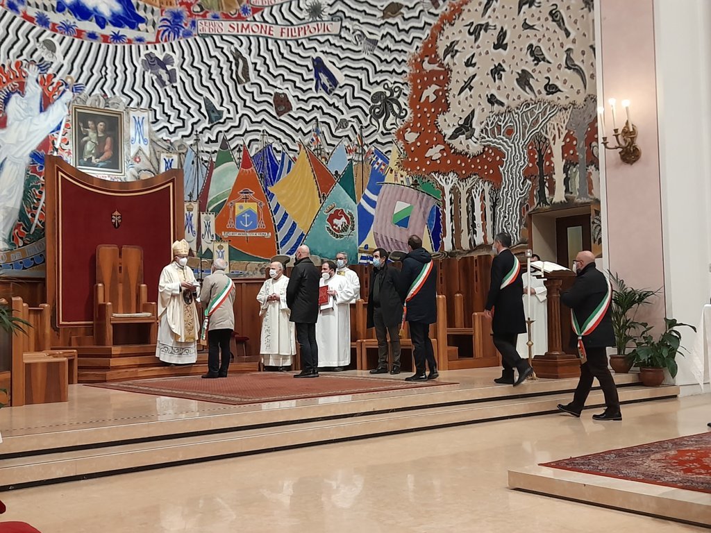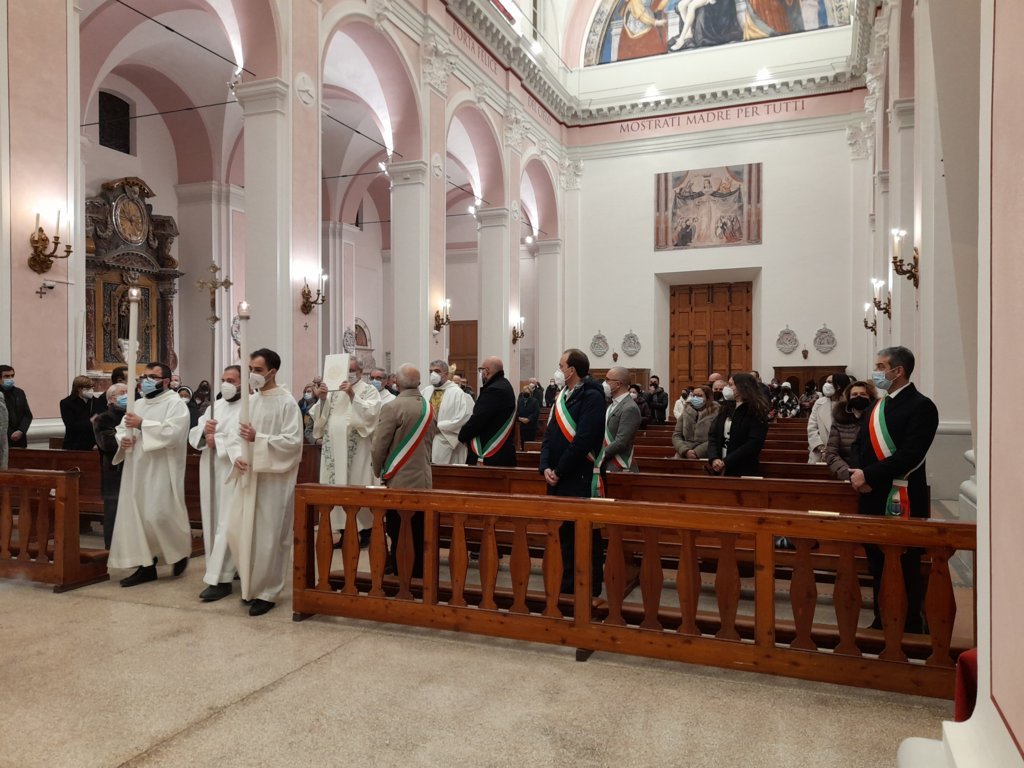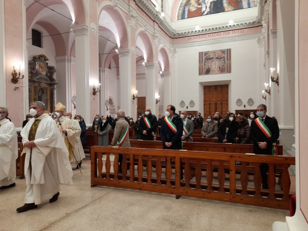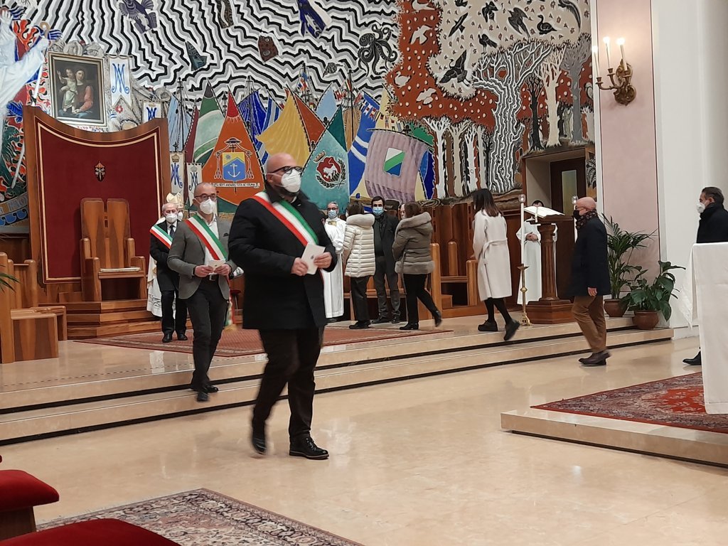 DIOCESI – “Lo scopo di questa celebrazione è di dedicare il primo giorno dell’anno alla preghiera per la pace, inviando ai capi delle nazioni e a tutti gli uomini un messaggio che invita alla riflessione su questo tema. Papa Francesco ci esorta con queste parole: ‘Mentre il mondo rimane nella morsa della pandemia, si amplifica l’assordante rumore di guerre e conflitti e, mentre aumenta anche la produzione delle armi, più che durante la guerra fredda, peggiorano gli effetti dei cambiamenti climatici, fame, sete; eppure è ancora possibile costruire una pace duratura . Tra l’indifferenza egoista e la protesta violenta, c’è un’opzione sempre possibile: il dialogo, il dialogo tra le generazioni.‘ Con questo breve discorso pronunciato da Fernando Palestini, presidente della Fondazione Chiaretti, direttore dell’Ufficio Comunicazioni Sociali e vice direttore della Caritas Diocesana, è iniziata la celebrazione delle ore 18:00 del 1° Gennaio presieduta dal Vescovo Carlo Bresciani presso la Cattedrale della Madonna della Marina a San Benedetto del Tronto. Presenti molte autorità politiche locali, invitate per l’occasione appositamente per pregare insieme per la pace, tra cui: Giorgio Fede, senatore della Repubblica sanbenedettese; Tonino Capriotti, vicesindaco di San Benedetto del Tronto; Alessandro Lucciarini De Vincenzi, sindaco di Ripatransone; Alessandro Rocchi, vicesindaco di Grottammare; Licio Romandini, sindaco di Sant’Egidio alla Vibrata; Pierpaolo Rosetti, sindaco di Acquaviva Picena; Massimo Vagnoni, sindaco di Martinsicuro.