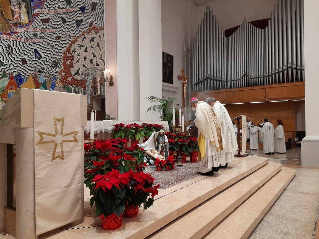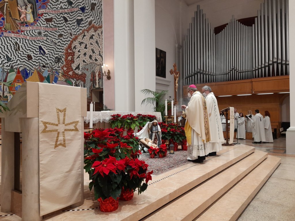 Queste le parole del Vescovo Bresciani durante l’omelia: “La Chiesa celebra oggi la 55° Giornata della Pace, istituita da san Paolo VI nel 1967. Si celebra nel giorno liturgico della Divina Maternità di Maria. La coincidenza non sembra casuale per due motivi. Primo, perché la maternità è una potente icona dei rapporti di pace. Secondo, perché il primo Gennaio, inizio di un anno nuovo, rimanda al tempo che ci è donato e a cosa ci aspettiamo dal tempo che ci attende: la pace. Infatti, se considerata non solo come assenza di guerra, è uno dei desideri più forti di ogni essere umano.