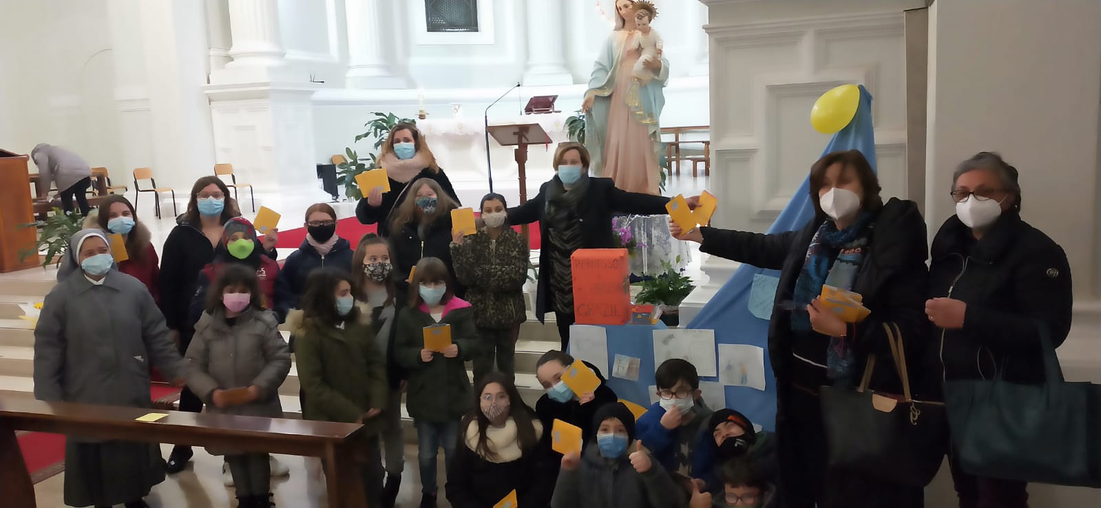 Il tema che stiamo trattando da alcuni mesi è quello della carità, generosità e disponibilità verso chi è meno fortunato. Con i bambini e ragazzi del catechismo abbiamo svolto delle attività il cui ricavato è stato devoluto a un’associazione che si occupa di bambini meno fortunati. Nelle scorse settimane abbiamo addobbato un albero in Chiesa dove la comunità e i ragazzi possono lasciare dei pacchi regalo.