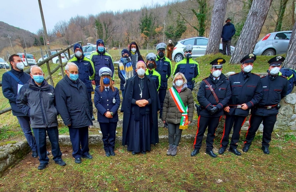Presenti: il Sindaco Francesca Grilli, prima donna Sindaco del paese e i vigili locali, di cui San Sebastiano è Protettore, per questo particolarmente presenti e legati da sempre a questa commemorazione.