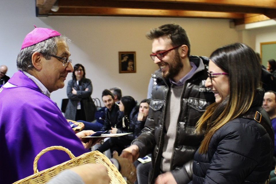 Cominciamo, anzi continuiamo anche quest’anno, perché i fidanzati non vedano lo sposarsi come il termine del cammino, ma assumano il matrimonio come una vocazione che li lancia in avanti, con la ferma e realistica decisione di attraversare insieme tutte le prove e momenti difficili (cfr. “Amoris Letitia”). E poi che il Signore ce la mandi buona!