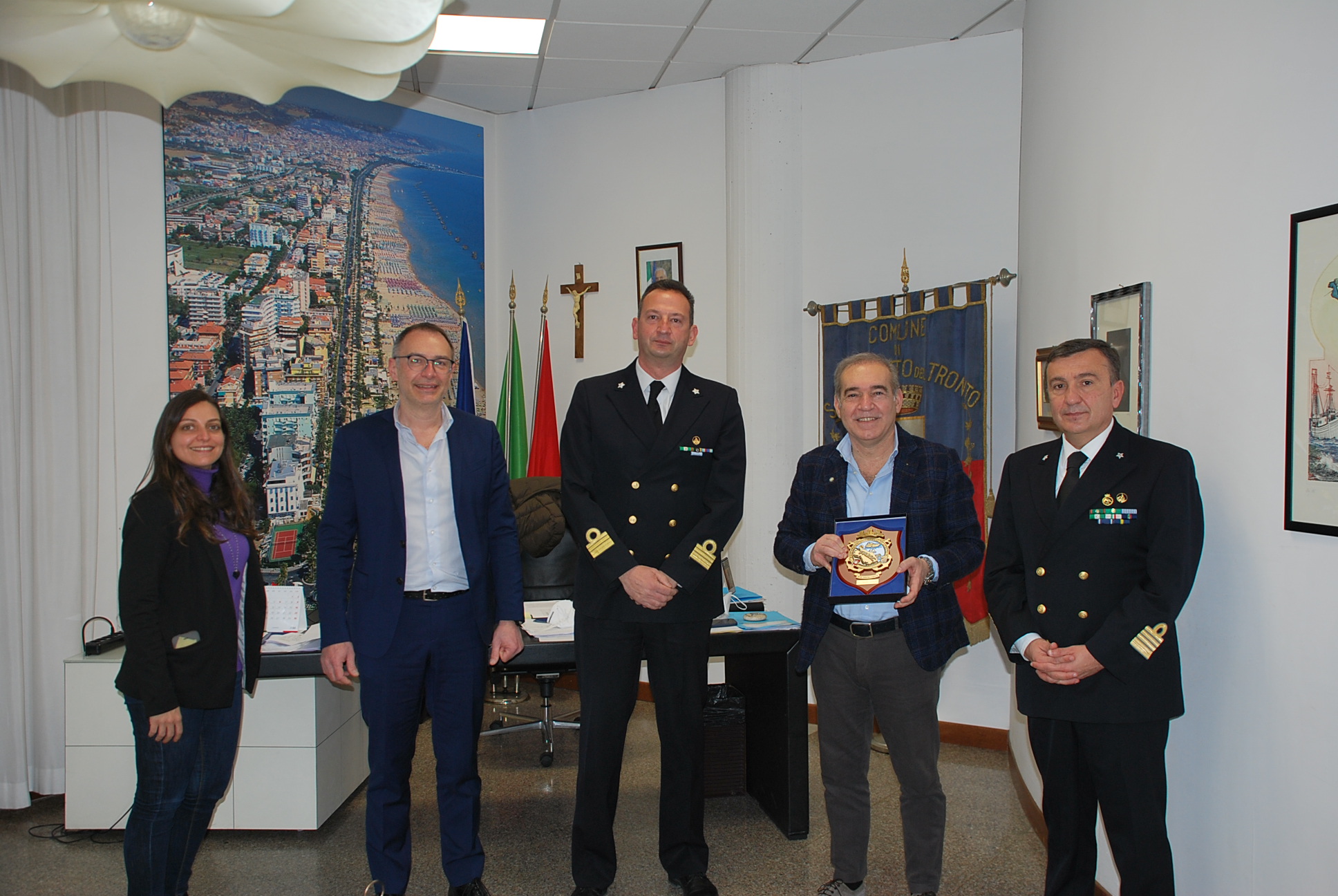 SAN BENEDETTO DEL TRONTO – Nella mattinata di martedì 15 febbraio il sindaco Antonio Spazzafumo, insieme agli assessori Laura Camaioni e Bruno Gabrielli, ha ricevuto in visita il Capitano di Vascello Donato De Carolis, comandante della Direzione Marittima di Ancona, accompagnatpo dal Capitano di Fregata Marco Mancini, comandante della Capitaneria di Porto di San Benedetto del Tronto.