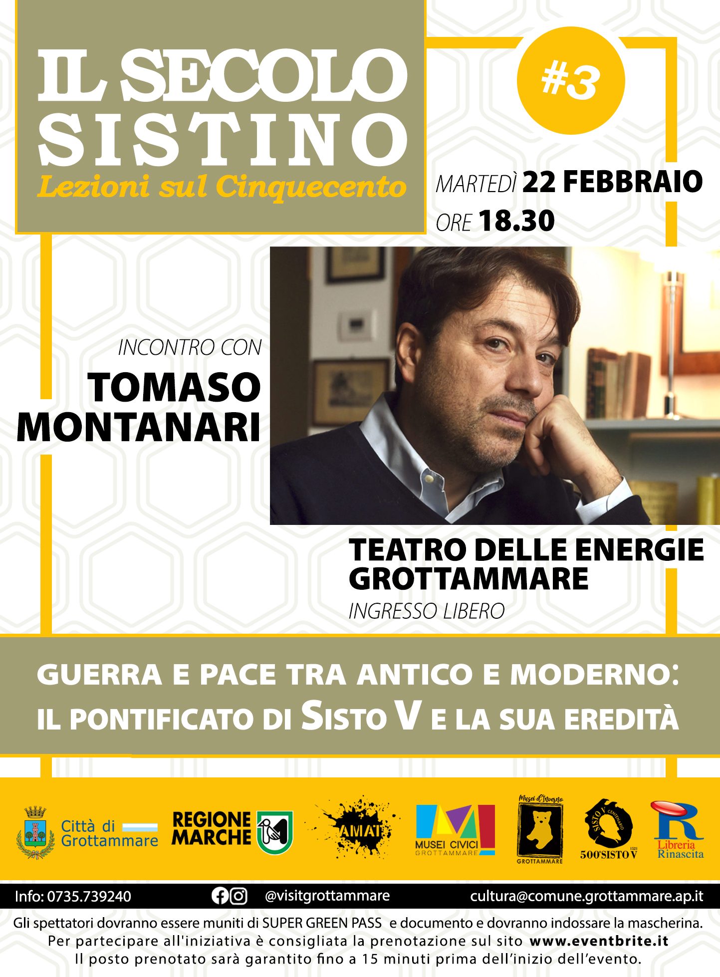 “Tomaso Montanari – dichiara l’assessore Lorenzo Rossi – , oltre a essere uno dei massimi storici dell’arte in Italia, è divenuto negli anni uno dei più importanti intellettuali del nostro paese, che crede nel ruolo della cultura come emancipazione della cittadinanza. Non posso nascondere il nostro orgoglio di averlo come ospite a Grottammare per questo cinquecentenario sistino. Felice Peretti, nel suo breve pontificato, segnò un’epoca di trasformazione della Chiesa, della cultura cattolica dopo la Riforma e il Concilio di Trento e soprattutto della città di Roma. Un papa urbanista che diede grande impulso all’arte e all’architettura. Con le sue straordinarie doti di divulgatore saprà regalare al pubblico una lezione imperdibile.
